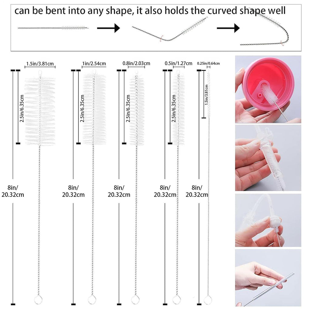 【Premium Material】: Crafted from premium PBT, Nylon, and Stainless Steel material, this Bottle Cleaning Brush Set is designed for long term use. Built for durability, this bottle brush withstands regular use without compromising on performance