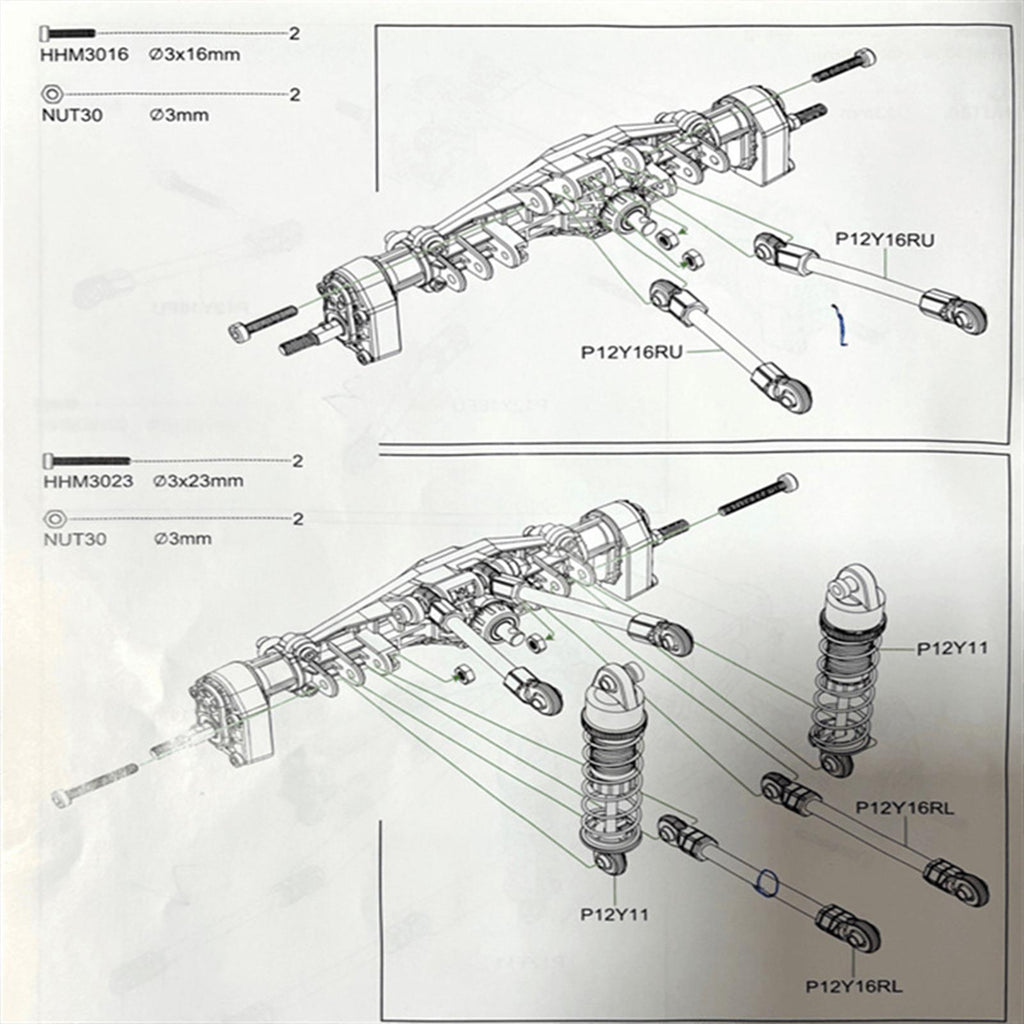 【Comprehensive Set】: The package includes eight rods in total - two P12Y16FU (8.215cm/3.23inch), two P12Y16FL (8.81cm/3.47inch), two P12Y16RU (7.6cm/2.99inch), and two P12Y16RL (8.325cm/3.28inch) - providing a complete upgrade solution for your RC car's chassis stabilization needs