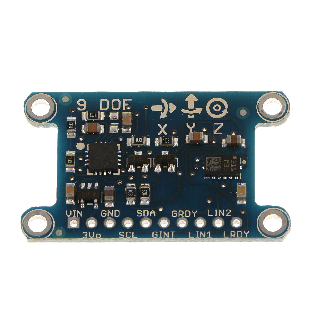 - 9DOF IMU Breakout9 can capture movement or orientation of 9 different types of access to relevant data: 3-axis magnetic orientation of acceleration and angular velocity that is --three-axis gyro + three axis accelerometer + tri-axial magnetic field