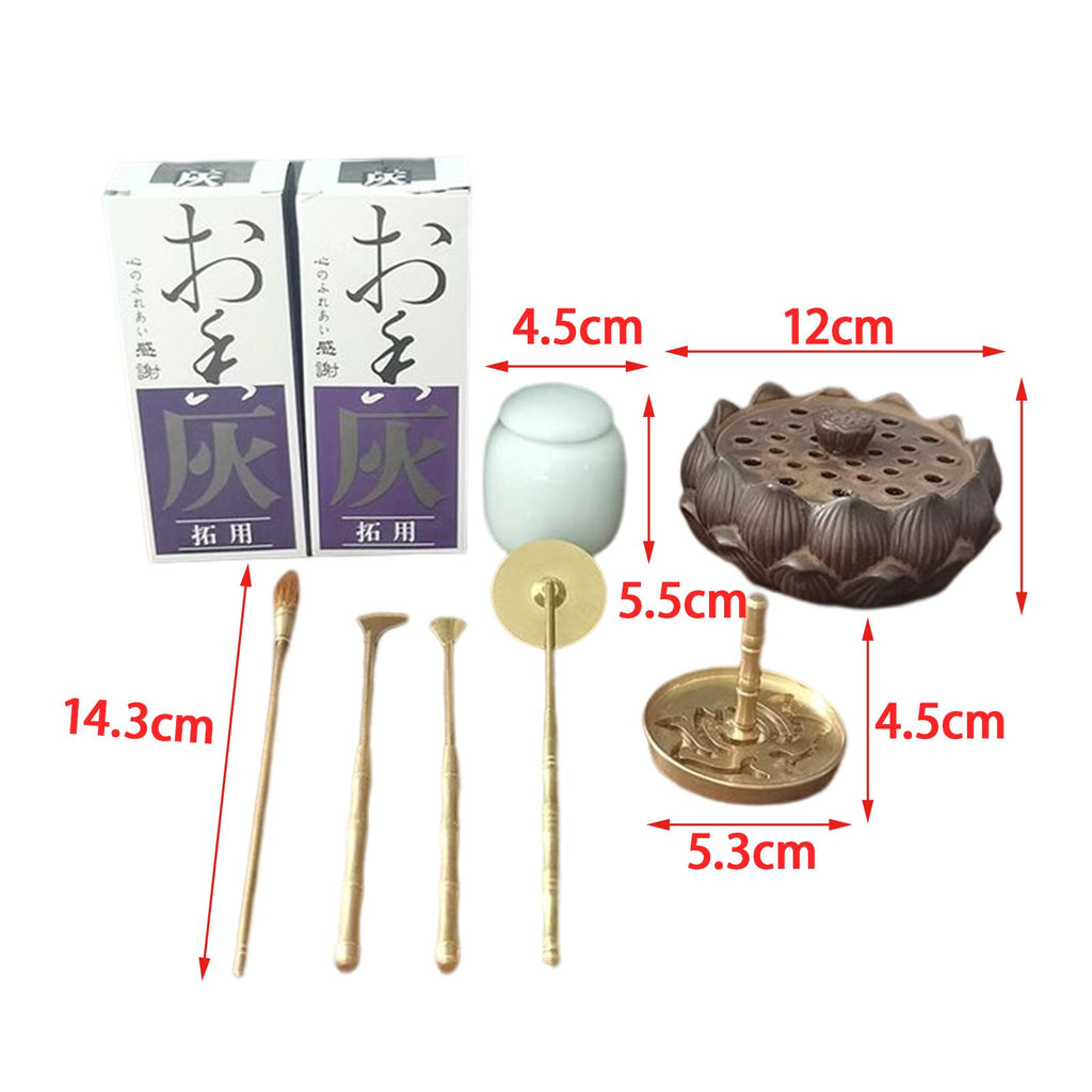 Package: Copper incense tool set, including ceramic incense burner, incense bottle, incense seal, incense spoon, incense spade, incense model and incense brush.