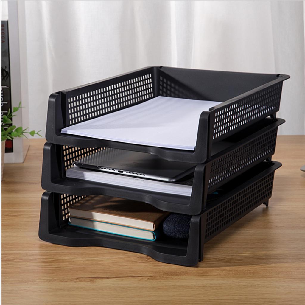 Max Acrylic Side Load Stackable A4 Paper Tray Organizer Folders Storage Black