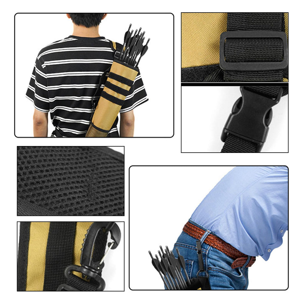 【Archery Arrow Quiver】: This bow quiver is made of premium thicken oxford cloth, it can accommodate a significant number of arrows and a bow, while the bottom mesh bag allows for easy storage.