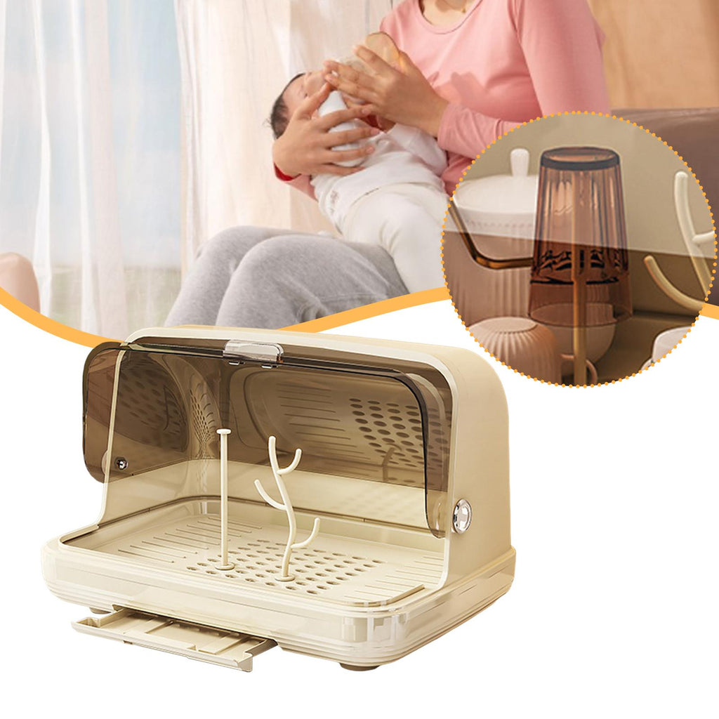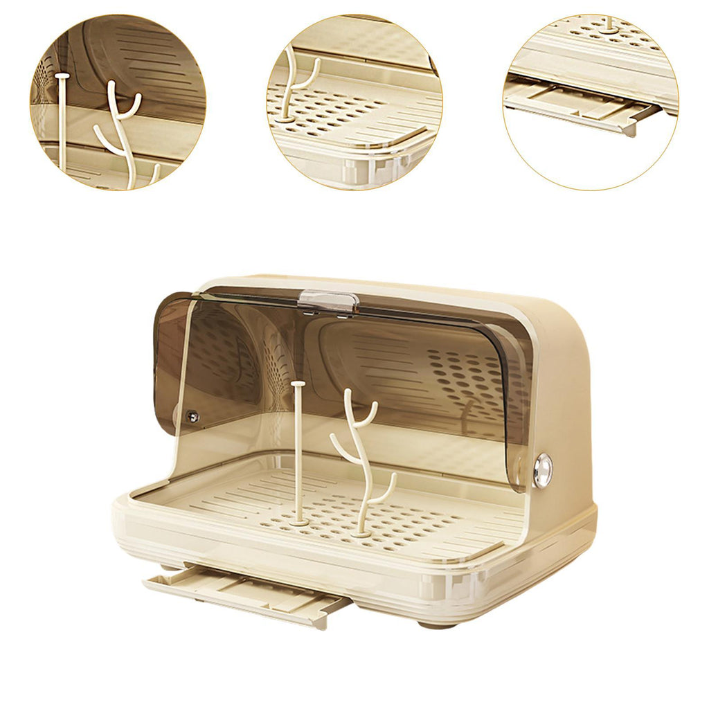 Maxbell Baby Bottle Drying Rack Nursing Bottle Storage Box for Home Cups Accessories Light Khaki Medium