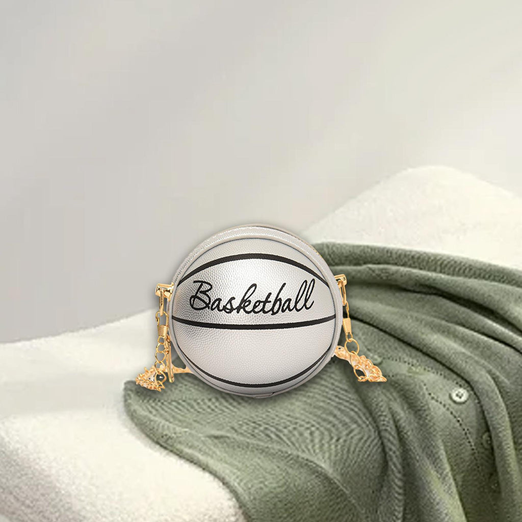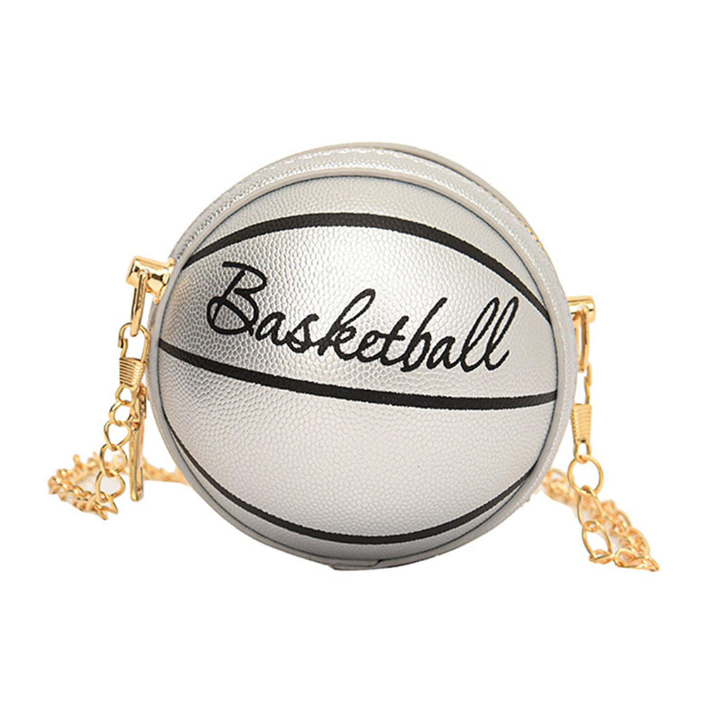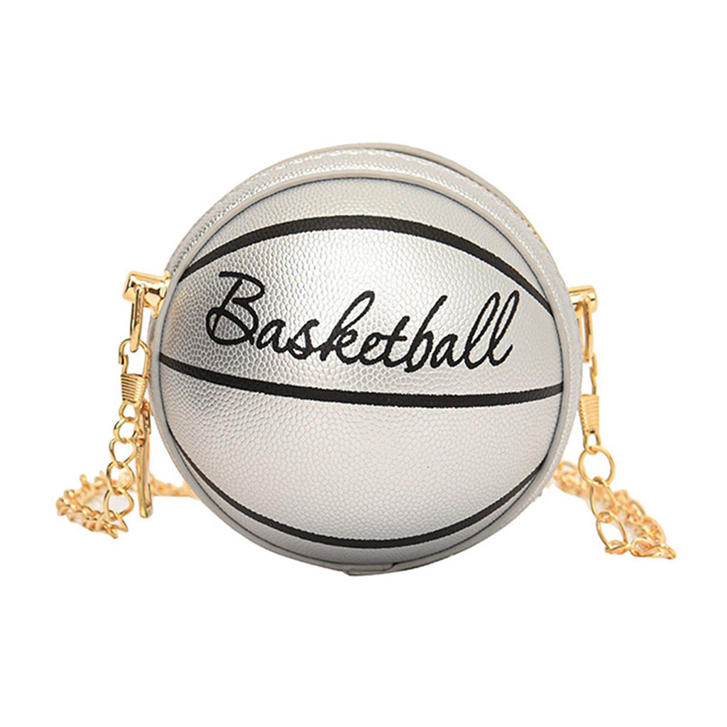 Maxbell Basketball Shaped Purse Casual Mini Round Ball Bag for Street Work Commuting Argent