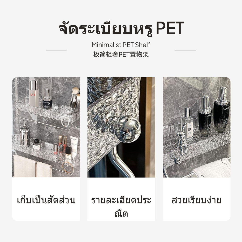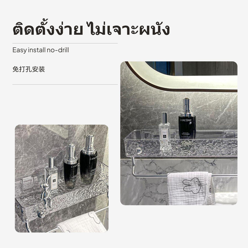 [Efficient Bathroom Storage] Featuring bathroom shelf, no-drill design and PET water ripple texture, this organizer provides ample room for washroom essentials, enhancing neatness for everyday routines.[Easy to Install adaptable] The hanging storage rack adopts a wall-mounted, no-nail installation—no damage to your wall. Suitable for bathroom, toilet, washbasin, and washroom scenarios.[Flexible choices] Available in rectangle and corner design, lengths of 30cm, 40cm, or 50cm, with single or double layers. Customizable styles and sizes fit different space and family needs.[Functional accessories] Some design variant include additional towel rods or classified compartments. The side rails provide stability and prevent items from falling, improving organization and safety.[Stylish feel dependable Support] Modern light luxury design with refined water ripple finish and optional hare decoration adds decorative appeal. Strong support ensures steady item arrangement even for tall bottles.Specification: