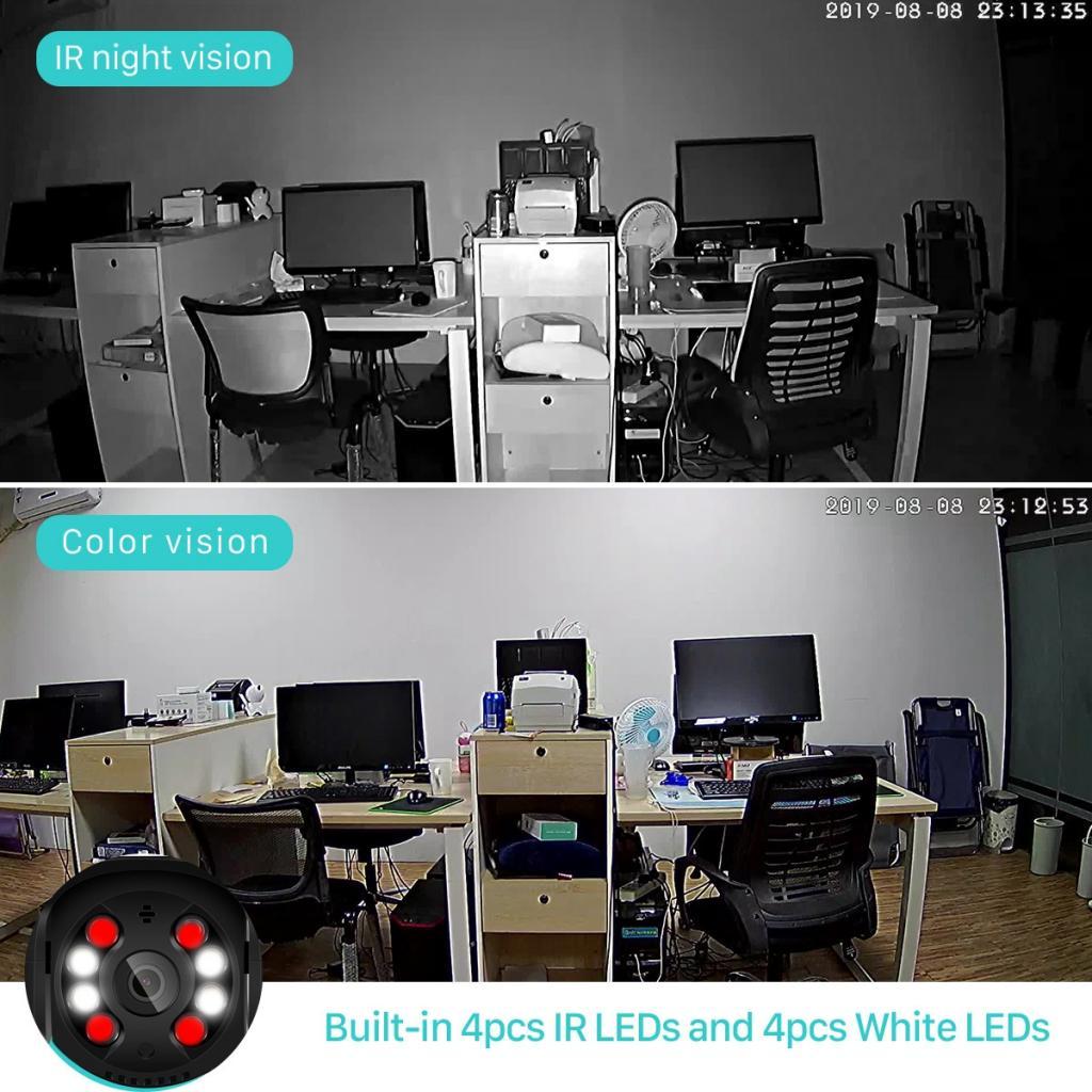 Smart Three Night Modes: Built-in 4Pcs White LED and 4Pcs IR LED. Monitor moving objects, automatically illuminate, black light full color infrared night vision double light warning