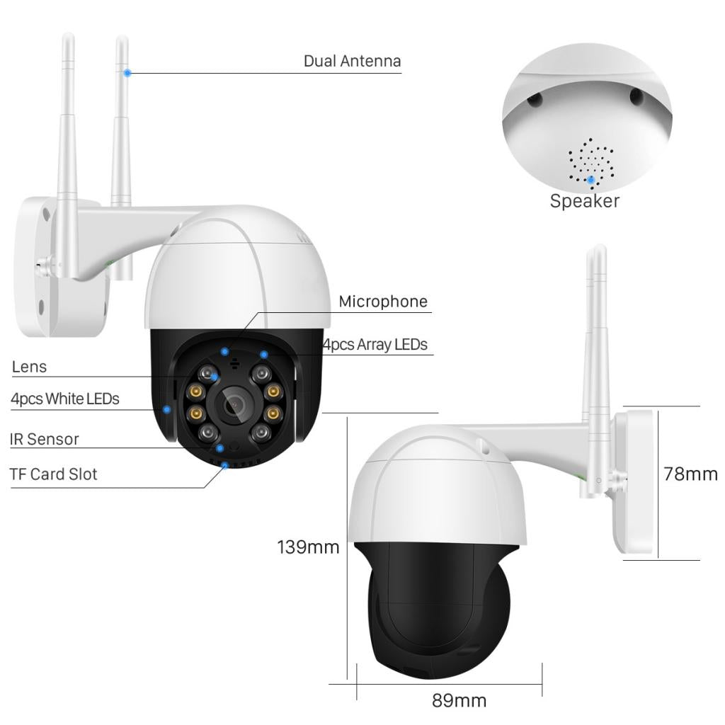 Maxbell BES-A8B HD 1080P Home WiFi PTZ IP Security Dome Camera Night Vision 3MP US