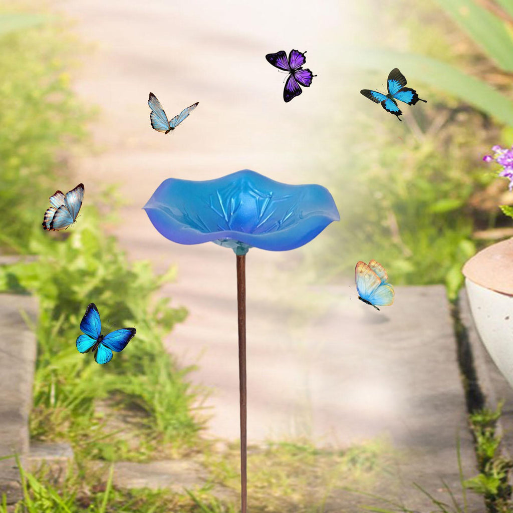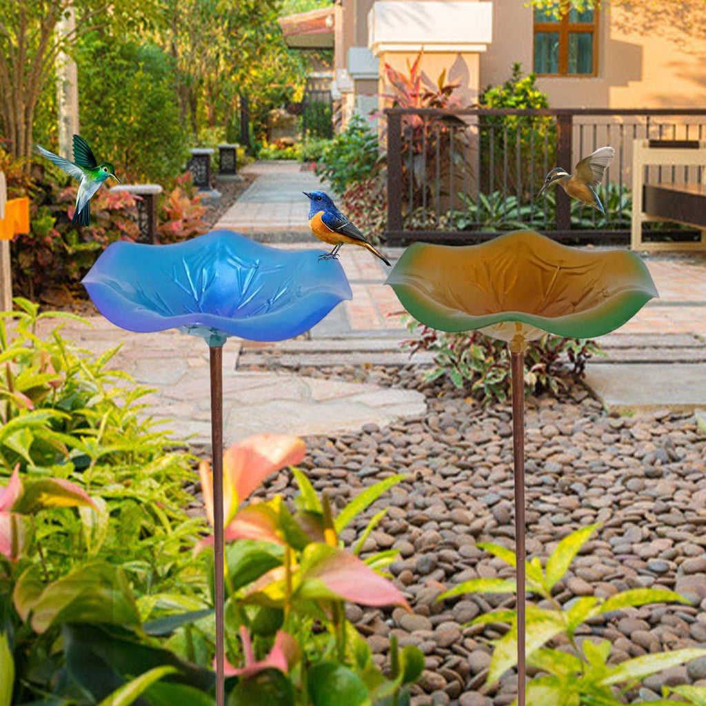 Maxbell Bird Baths for Outdoors Gifts Birdfeeder with Metal Stake for Kids Blue