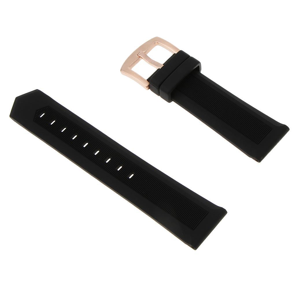 Maxbell Maxbell Black Silicone Rubber Sport Replacement Watch Band Strap 22mm Rose Gold