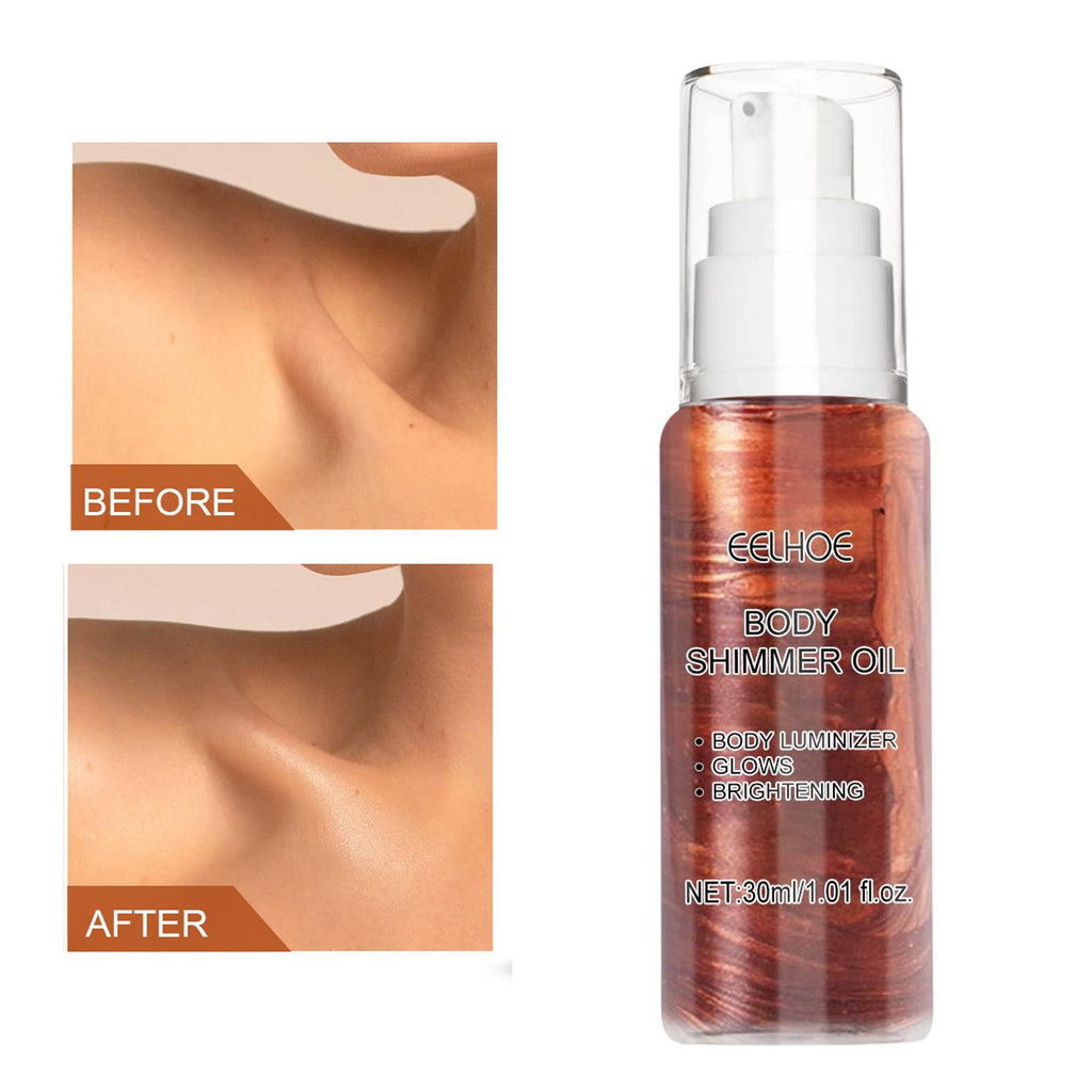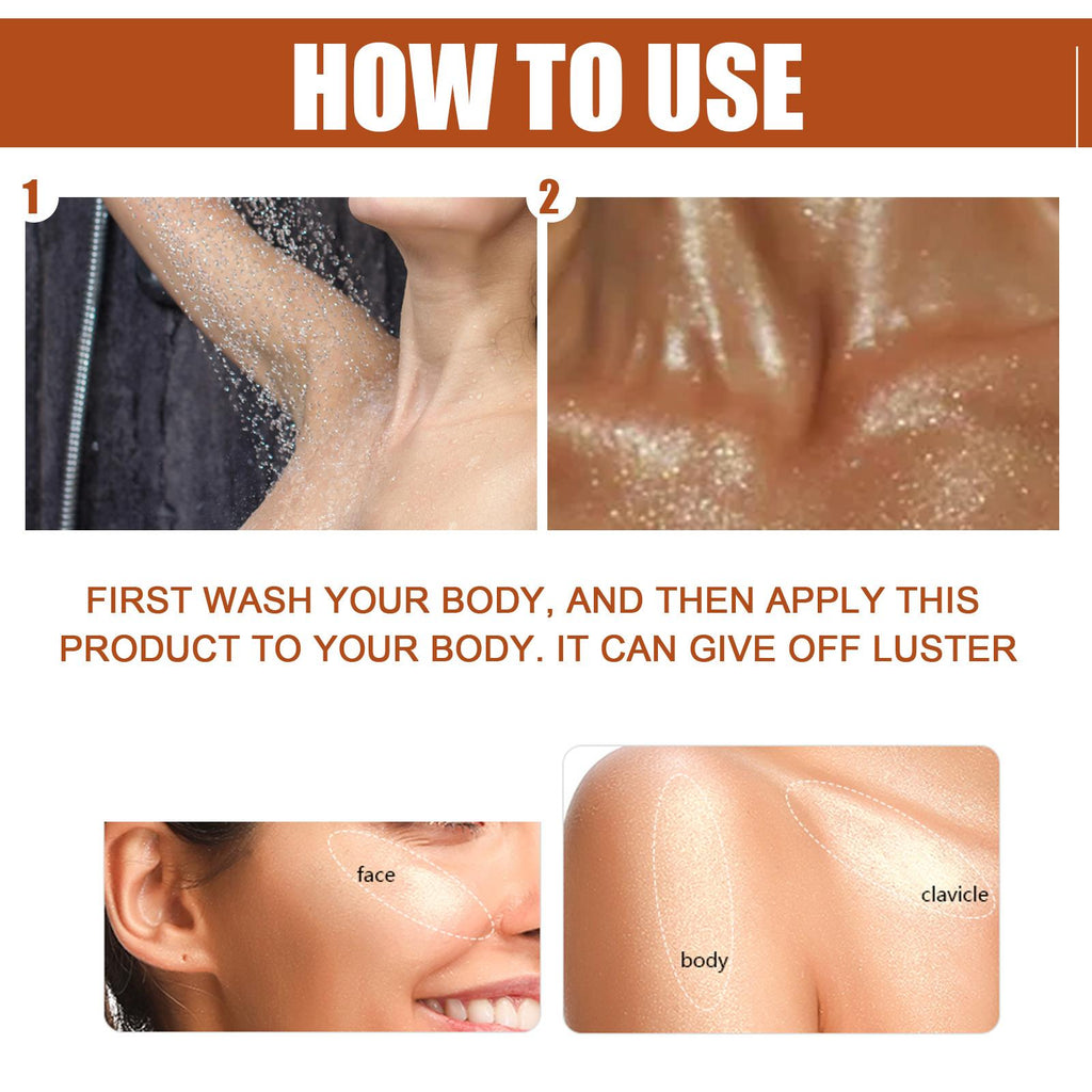 Easy To Apply Cleaning: Apply the shimmer oil to the body and push away, you can apply it where dries instantly. Easy to clean with a little soap and water.
