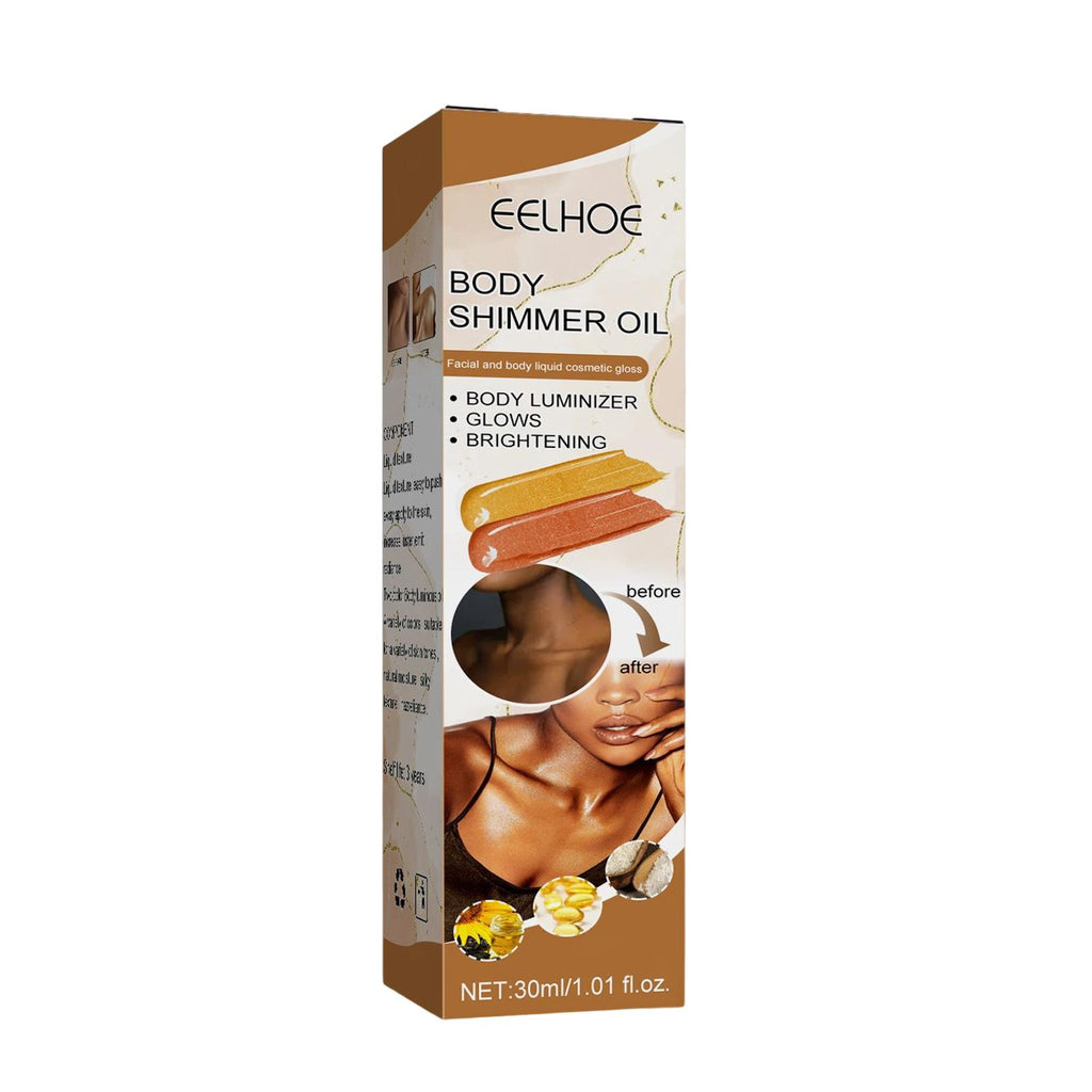 Shimmer Face oil: A common up face and body. Adds light to the face and brightens the complexion.