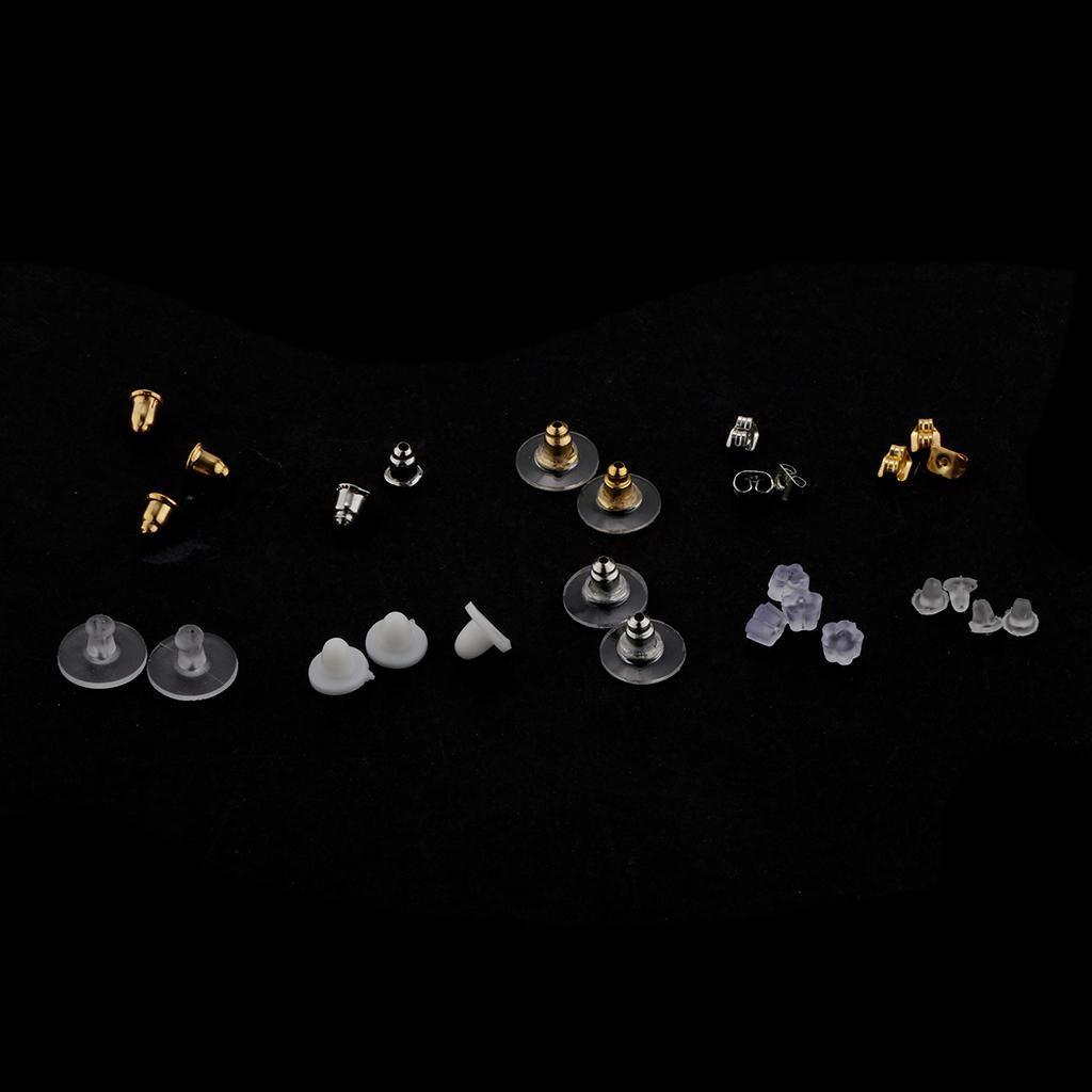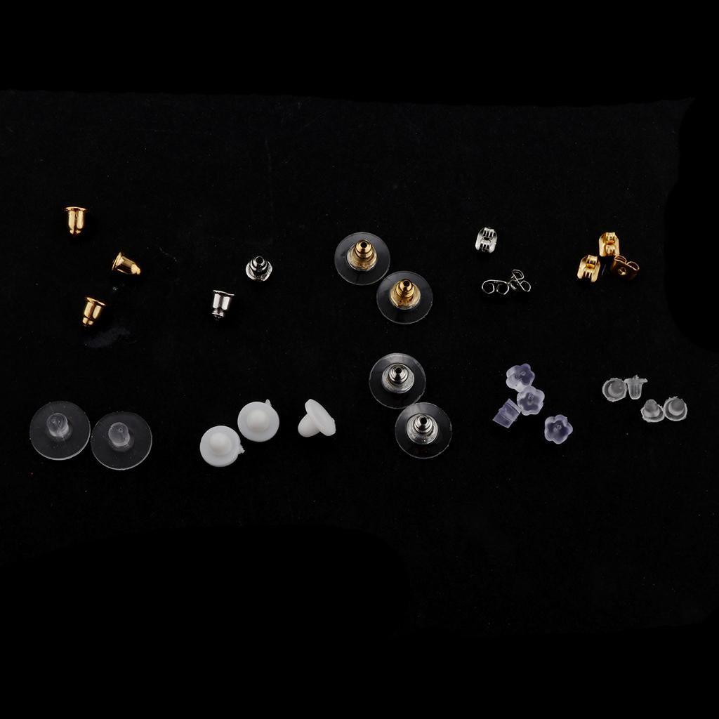 Including rubber earring backs, metal earring backs, clutch earring backs, clear earring backs, silicone earring backs, butterfly earring backs, ear post stoppers, plastic earring backs