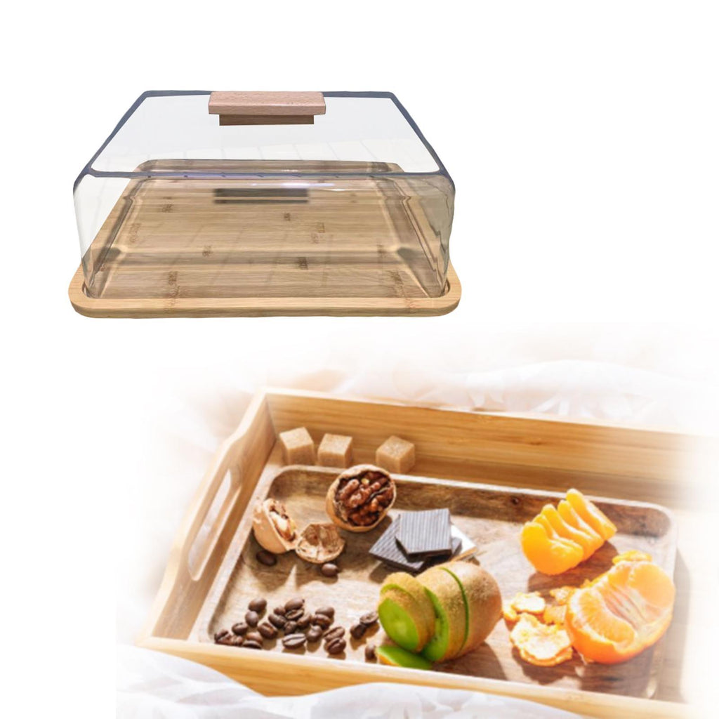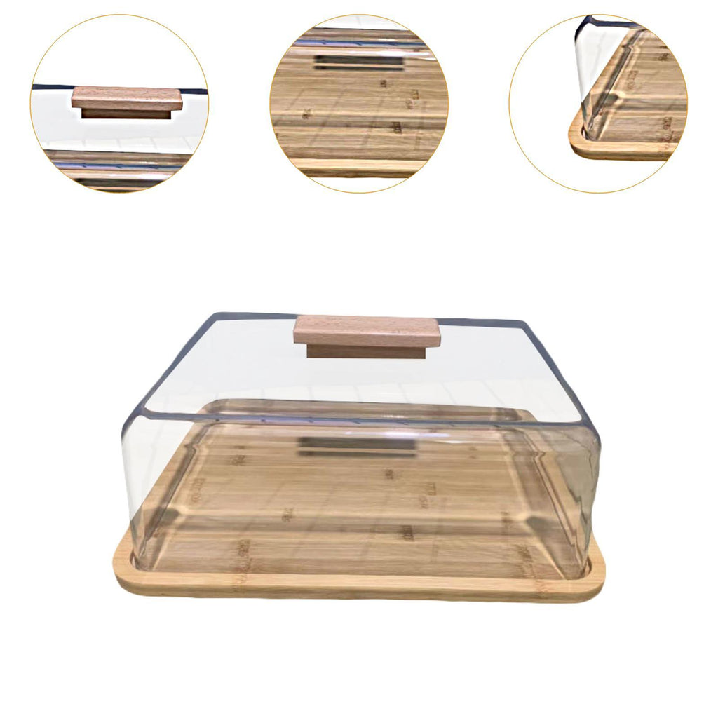 Maxbell Cake Stand with Lid Wood Pie Cheese Display Plate for Wedding Birthday Party