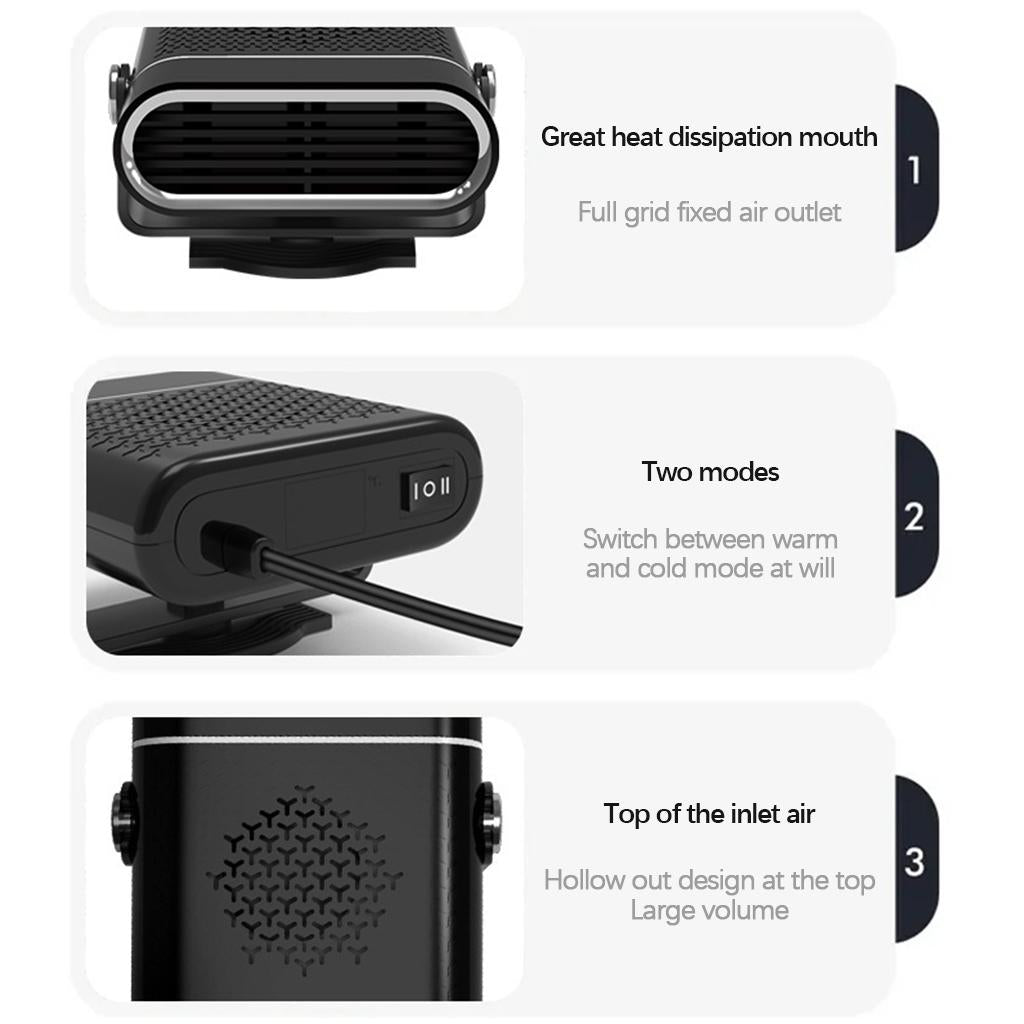 - 2 in 1 Heating And Cooling Fan: Car heater with two adjustable wind modes can be used as a car windshield defogger in winter, which can quickly defrost and make the car warm. And it can be used as a cooling fan in the summer.