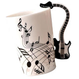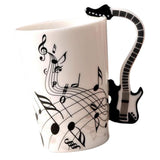 A super funky rock and roll instrument design ceramic mug, very cute fun design and ceramic coffee mugs.