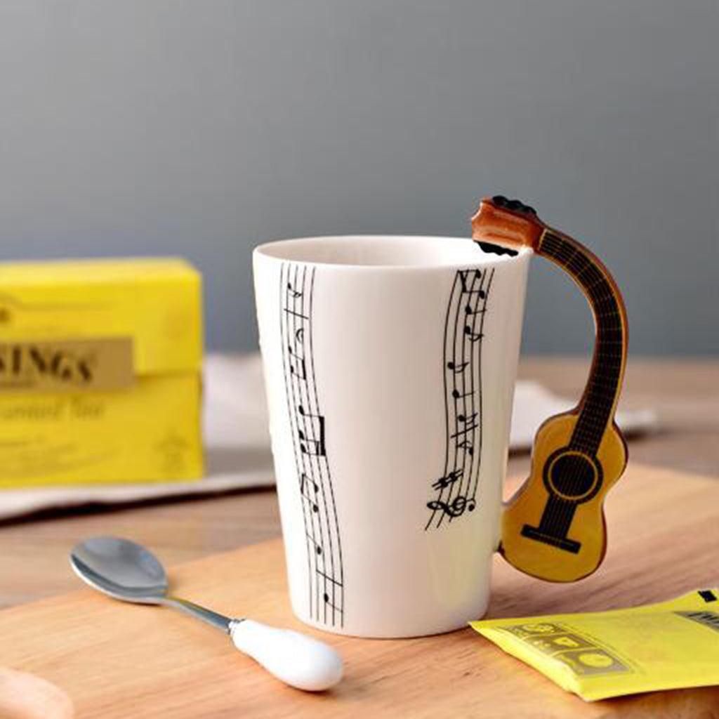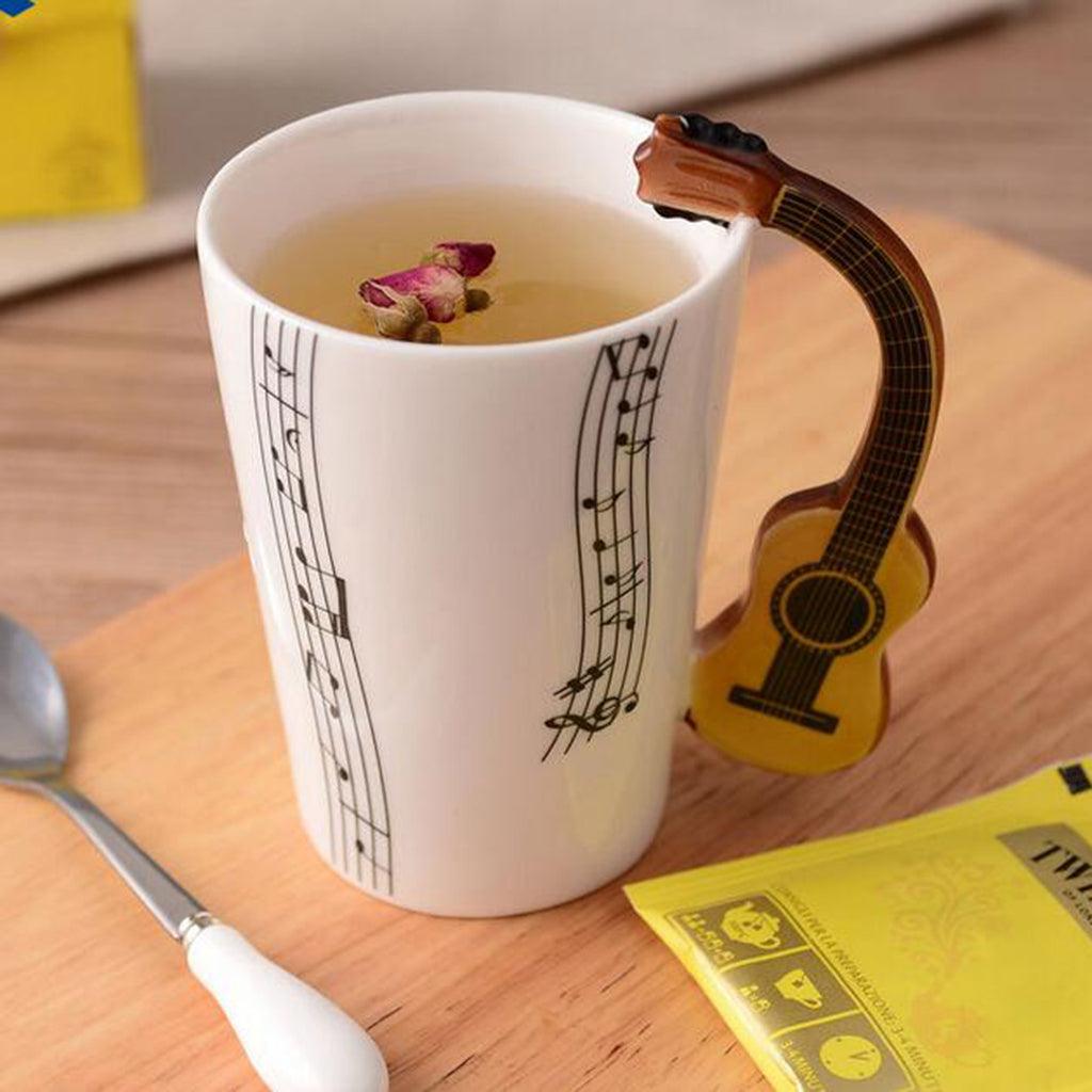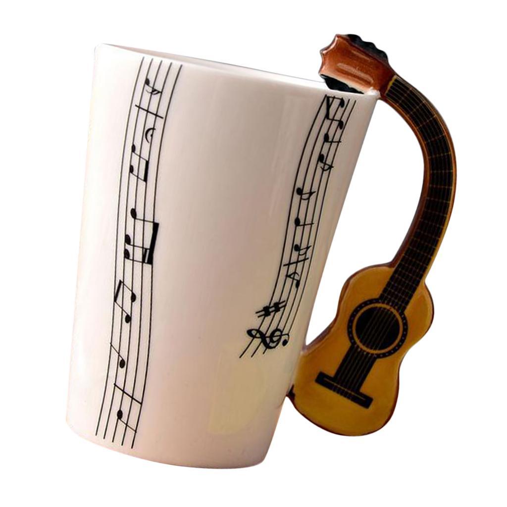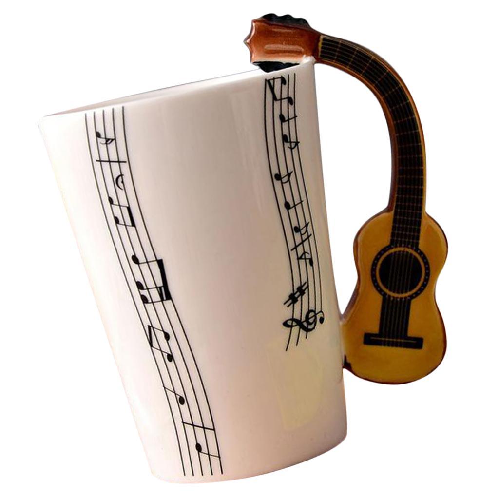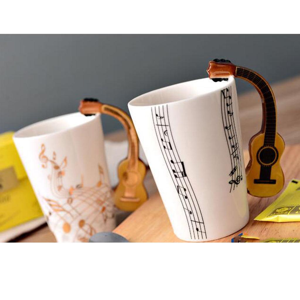 Maxbell Ceramic Cup Coffee Mug Instrument Mug Creative Gift Black Guitar Stave