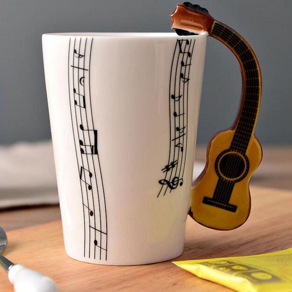 A super funky rock and roll instrument design ceramic mug, very cute fun design and ceramic coffee mugs.
