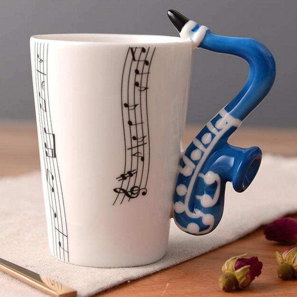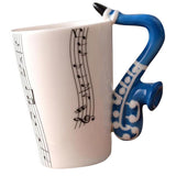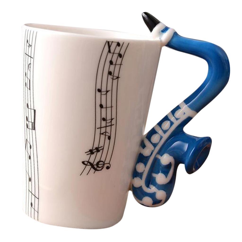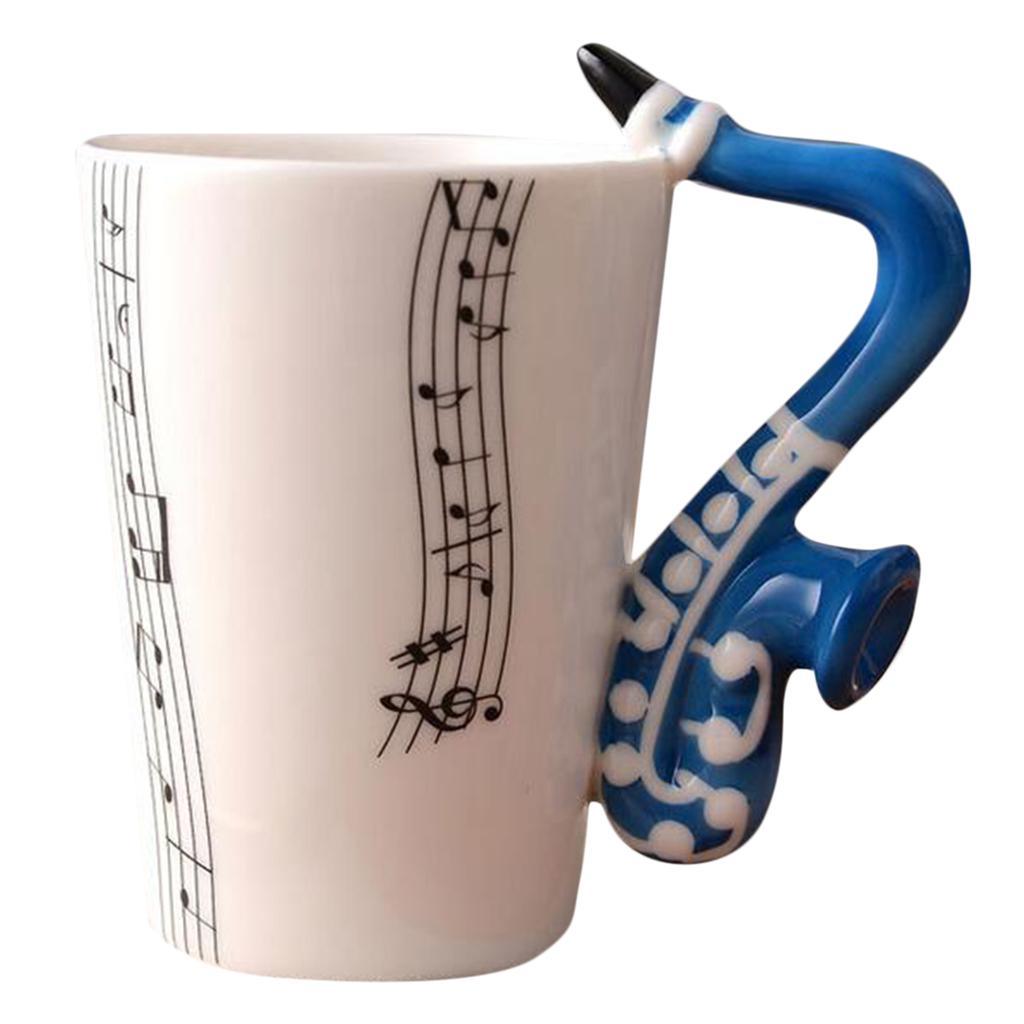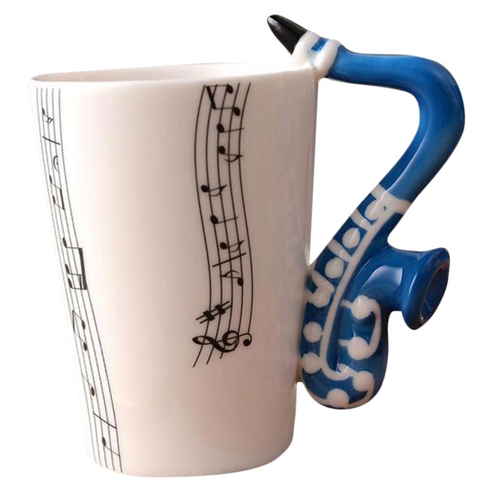 Maxbell Ceramic Cup Coffee Mug Instrument Mug Creative Gift Blue Saxophone Stave