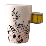A super funky rock and roll instrument design ceramic mug, very cute fun design and ceramic coffee mugs.