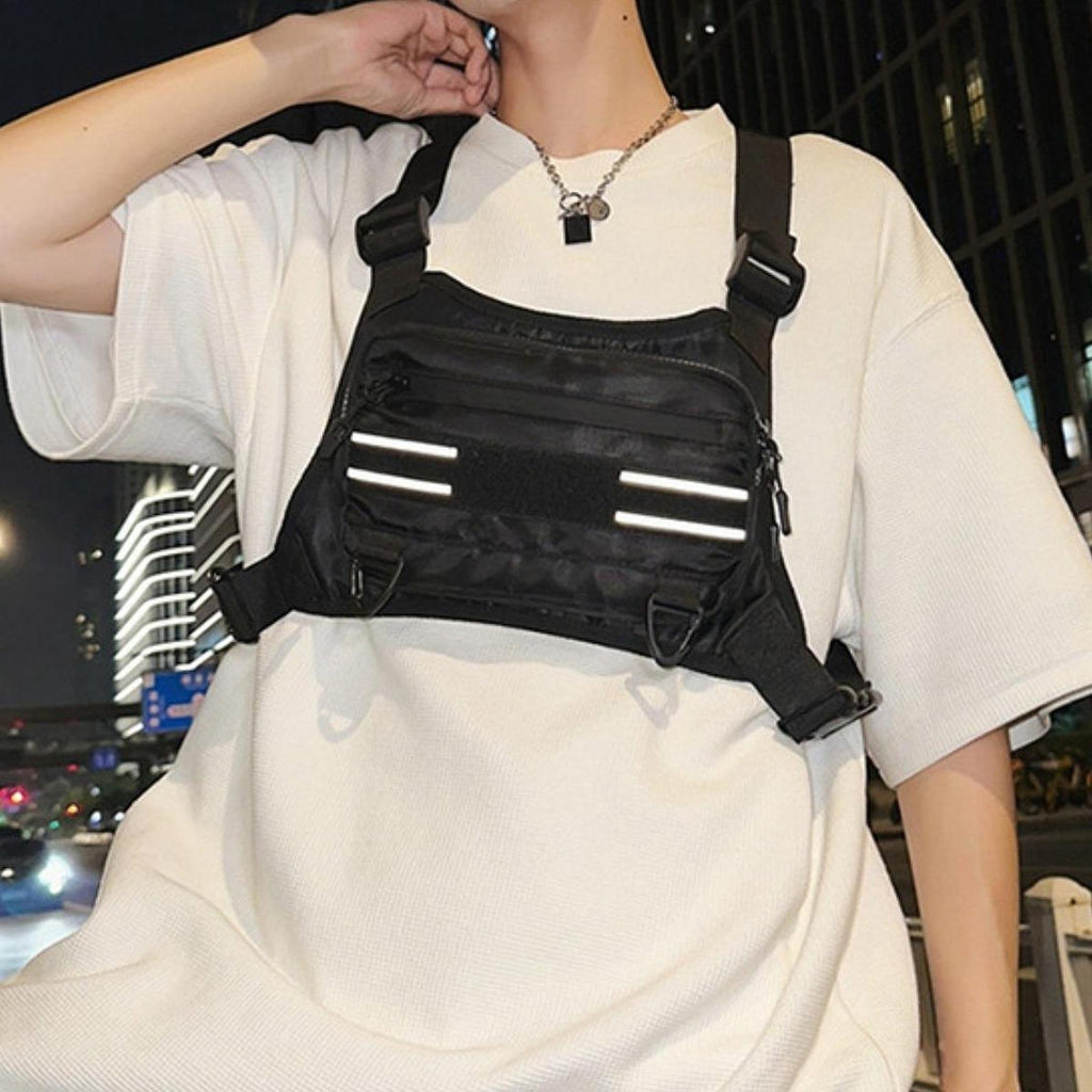 【Reflective Strip Design】: We have designed a section on the front of the chest bag where various reflective strips can be attached, making you safer at night and making your chest bag unique