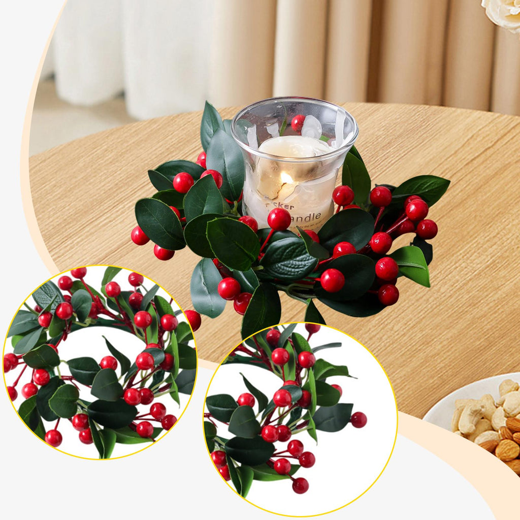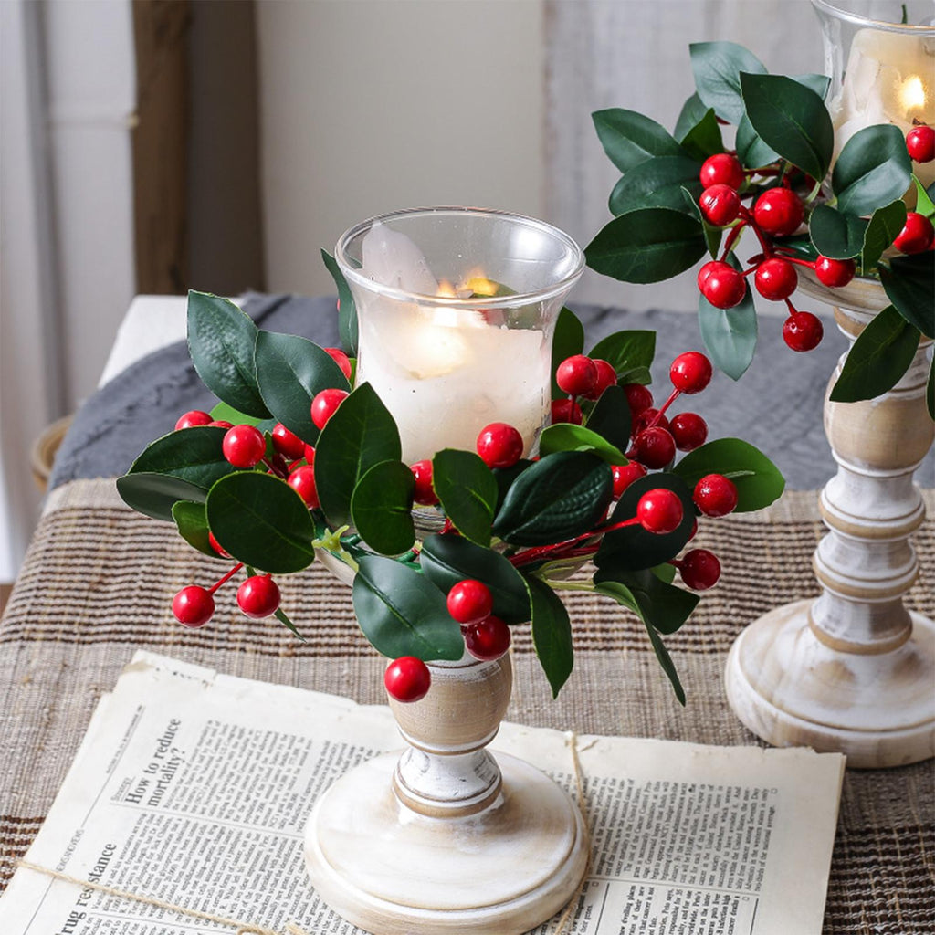 - 【 Versatile Festive Accent】: Perfectly designed as a candle ring to encircle your favorite pillar or jar candles, creating a stunning centerpiece. It's also ideal as a mini wreath for hanging on cabinets, chairs, or as a charming addition to your mantel display