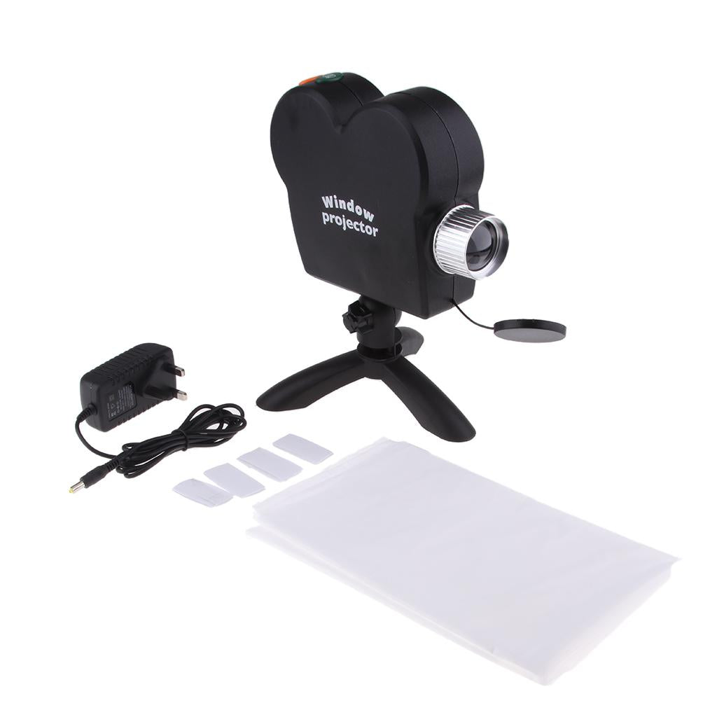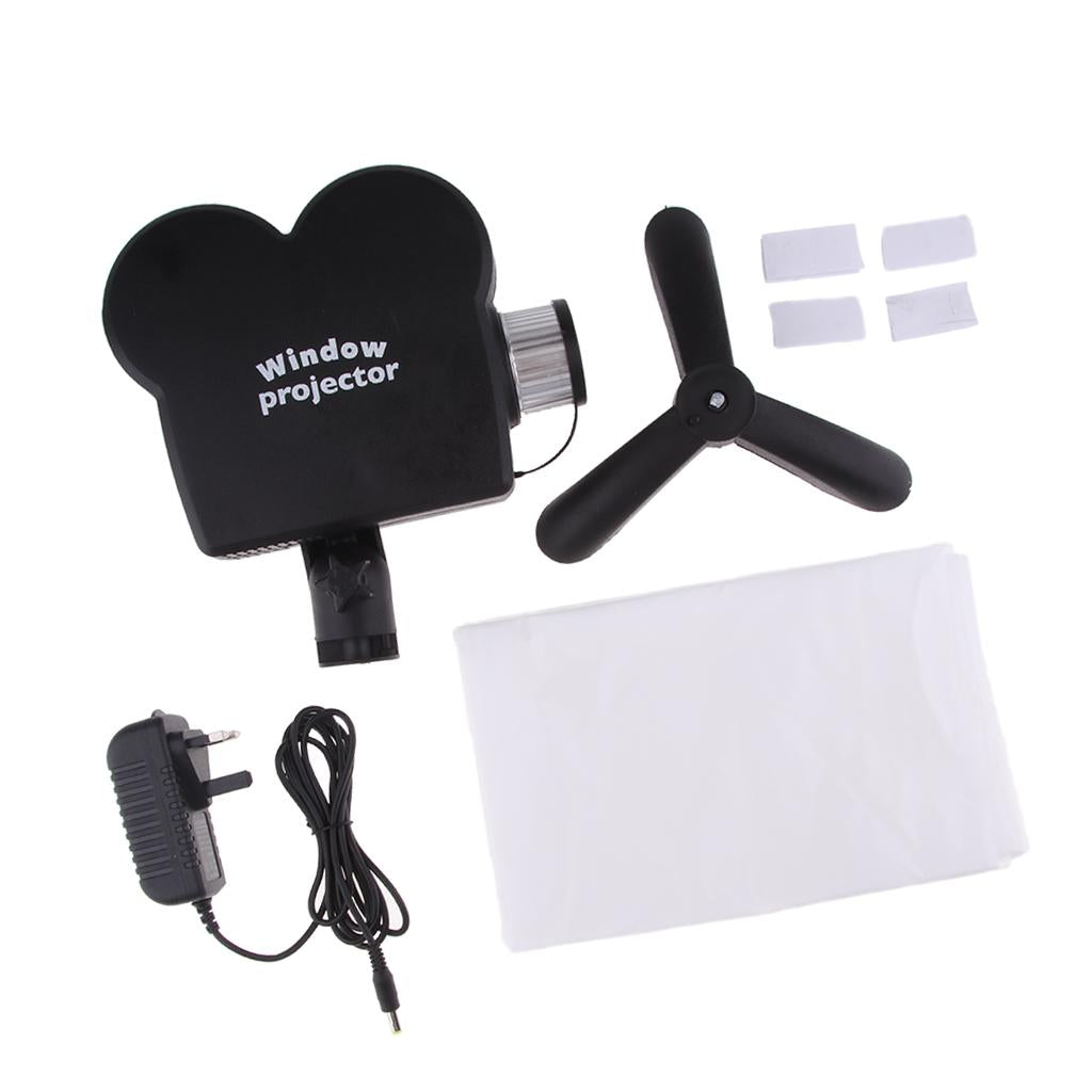 FULL COLOR MOVIES: Full color window movie projector plays 16-second movies in your windows – perfect Christmas and Halloween decorations