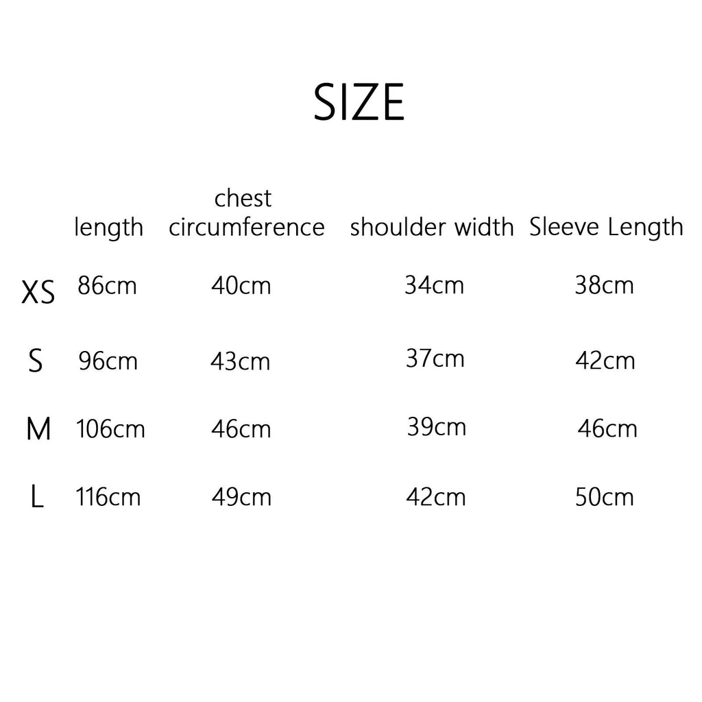 XS: Length: 86cm/33.86inch, Bust: 40cm/15.75inch, Shoulder Width: 34cm/13.39inch, Sleeve Length: 38cm/14.96inch, Recommended Height: 100-110cm, Recommended Age: 3-4 years old;