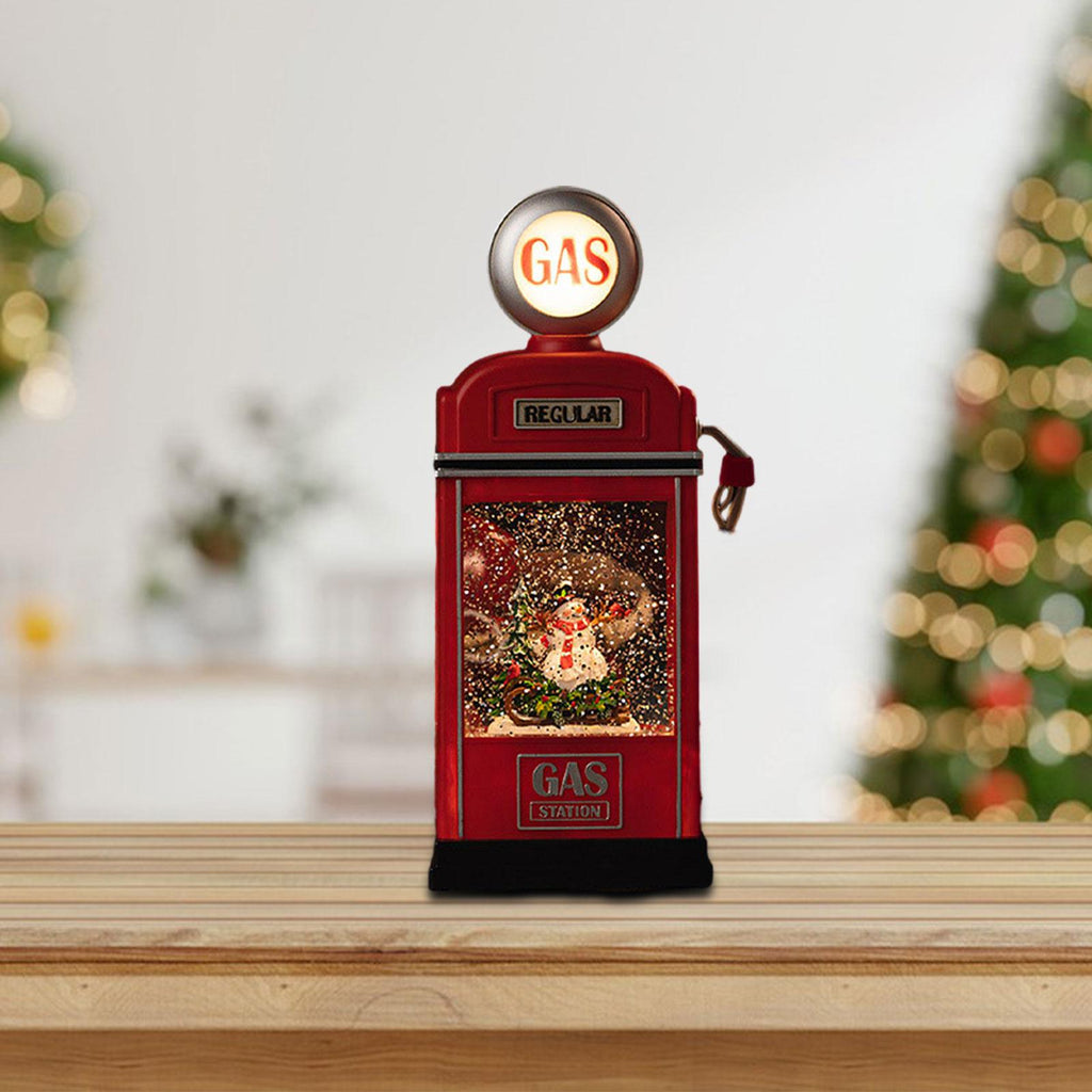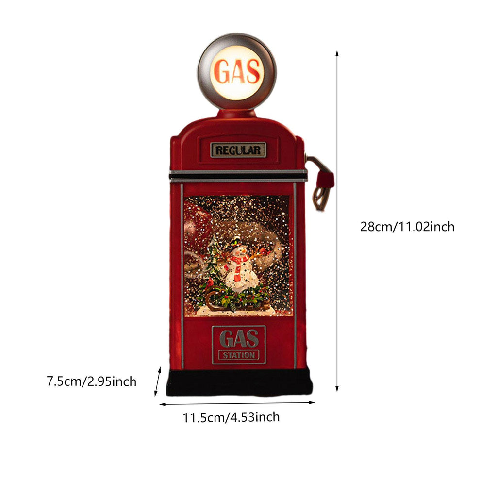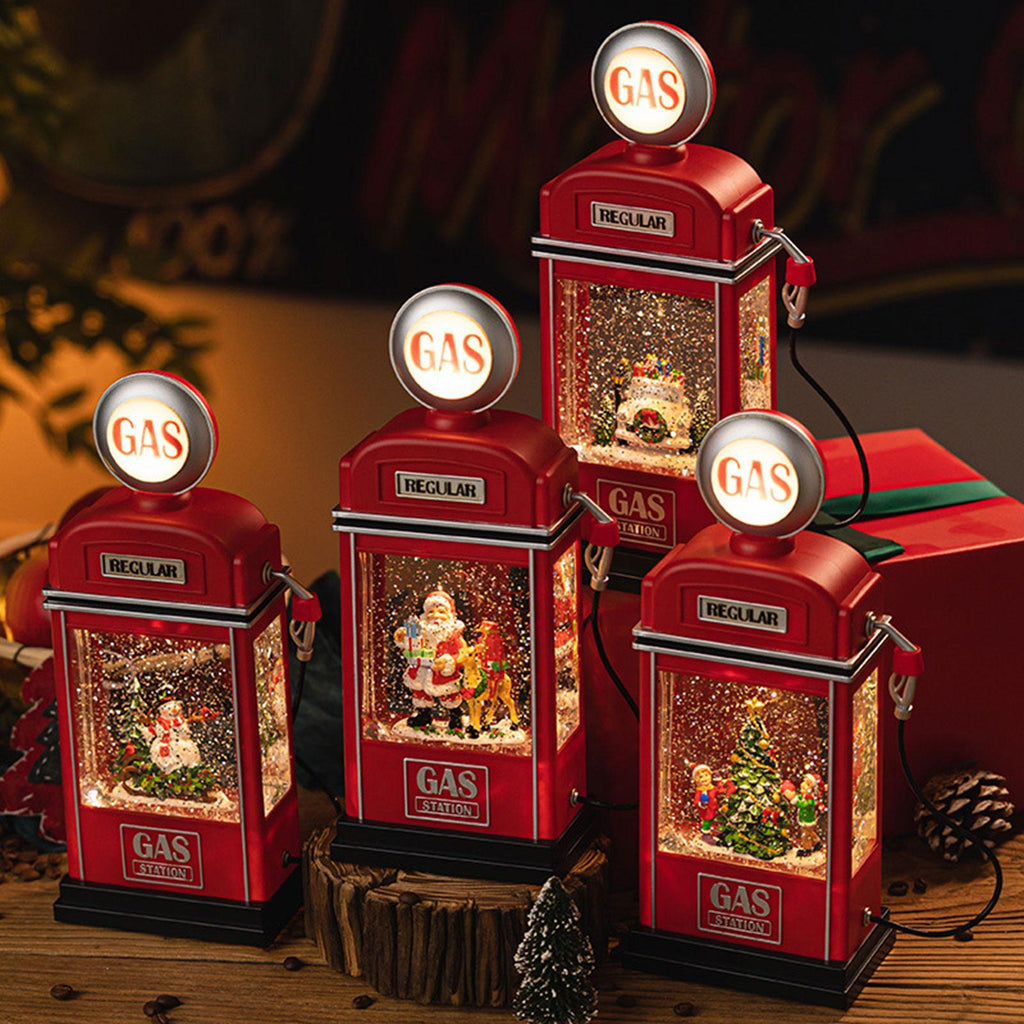 【Unique Design】: This Christmas decoration features a distinctive Santa Claus gas station design, combined with a snowfall scene, creating a strong festive atmosphere