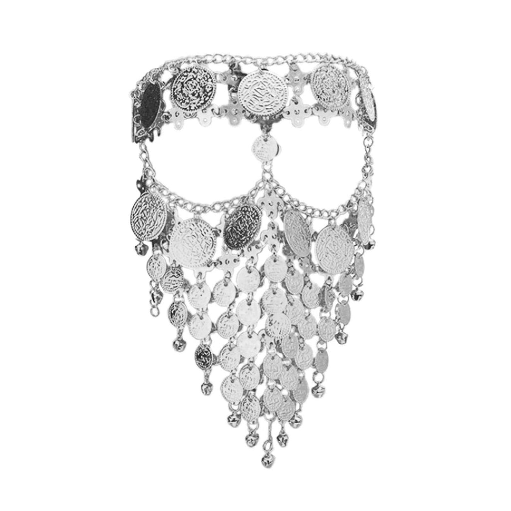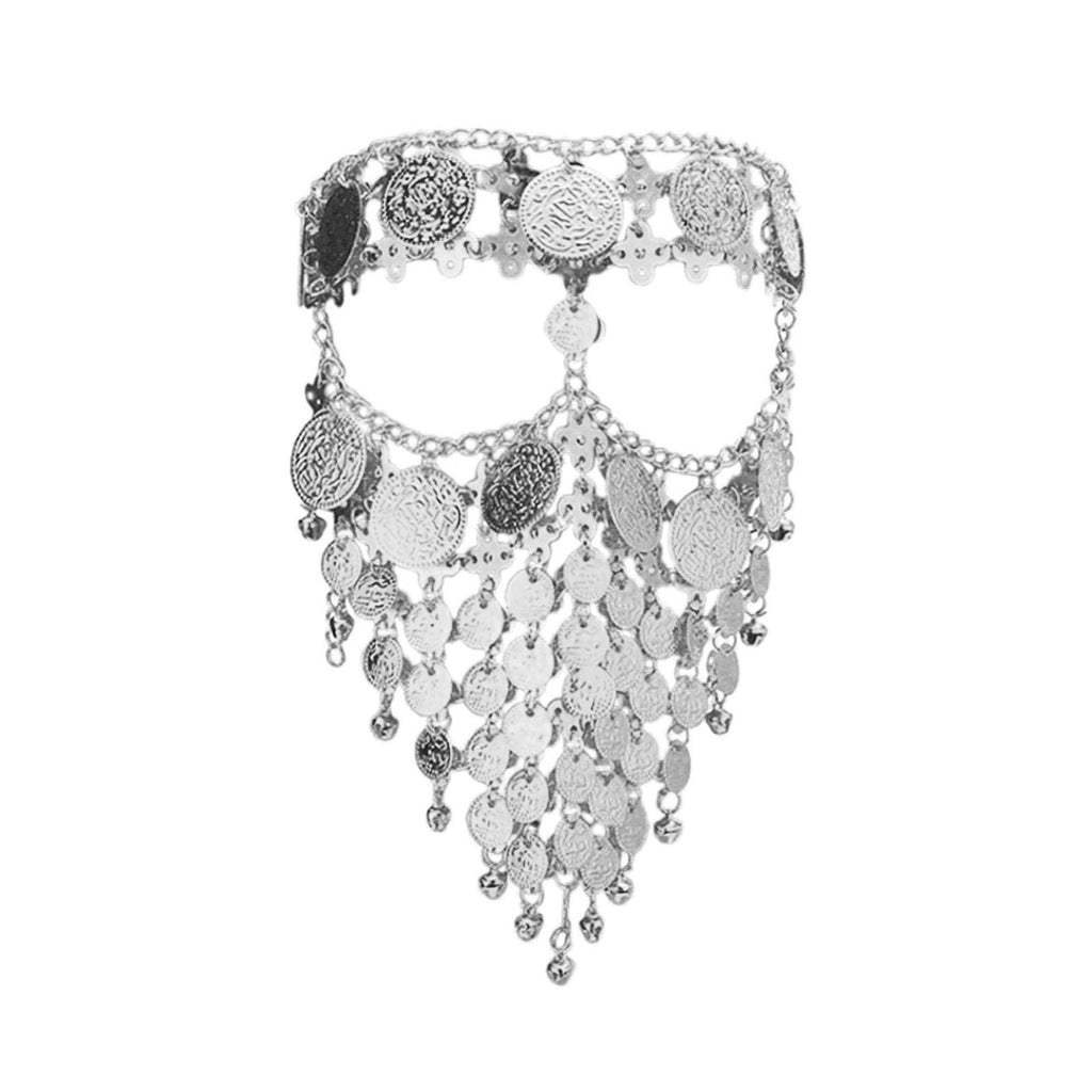 Maxbell Cosplay Belly Dance Face Veil Metal Veils for Masquerade Party Supplies Prom Argent