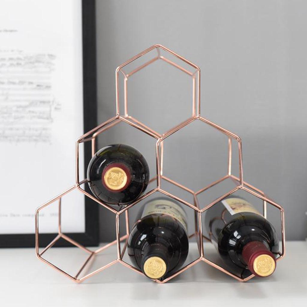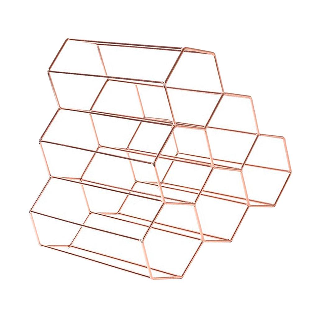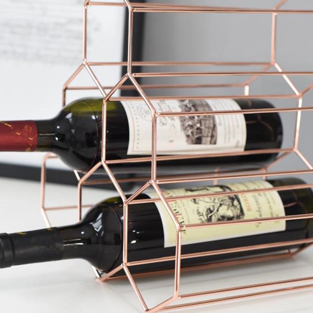 Maxbell Creative Triangle 6 Bottle Wine Rack Storage Holder Kitchen Bar Rose Gold