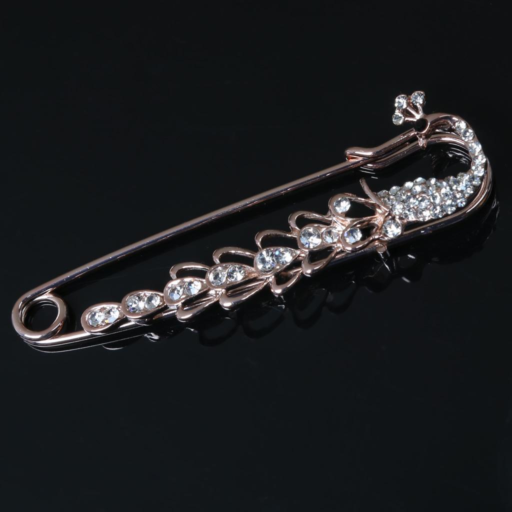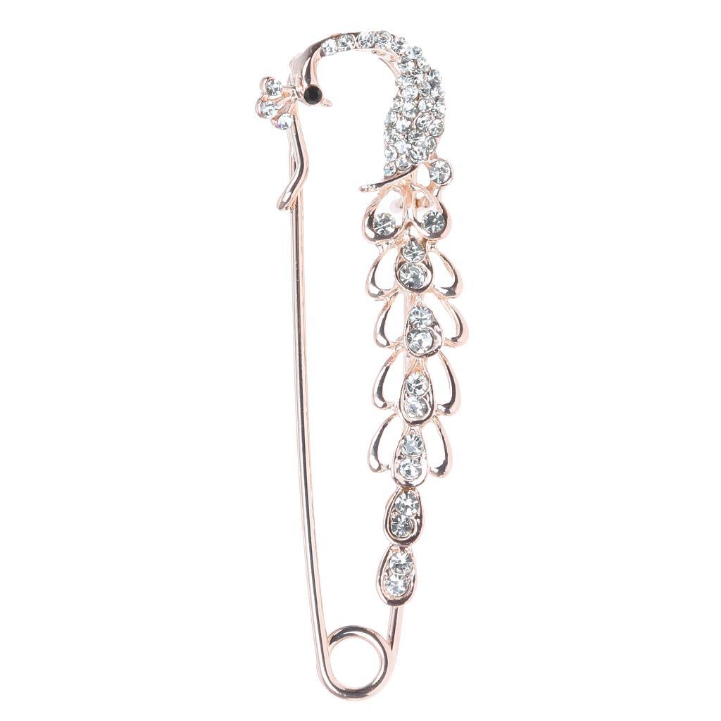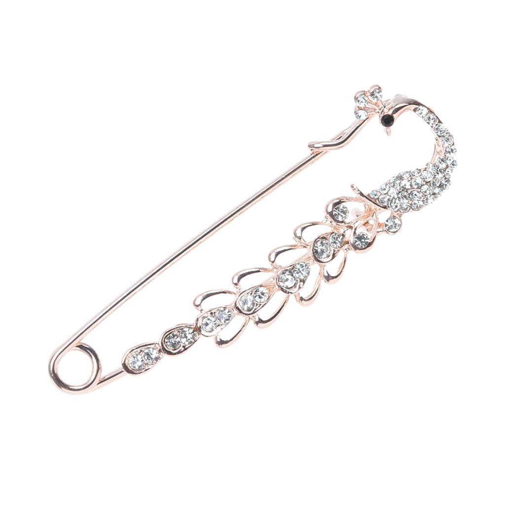 Maxbell Maxbell Crystal Peacock Safety Pin Brooch Clip for Ladies Scarf Coat Gown Rose Gold