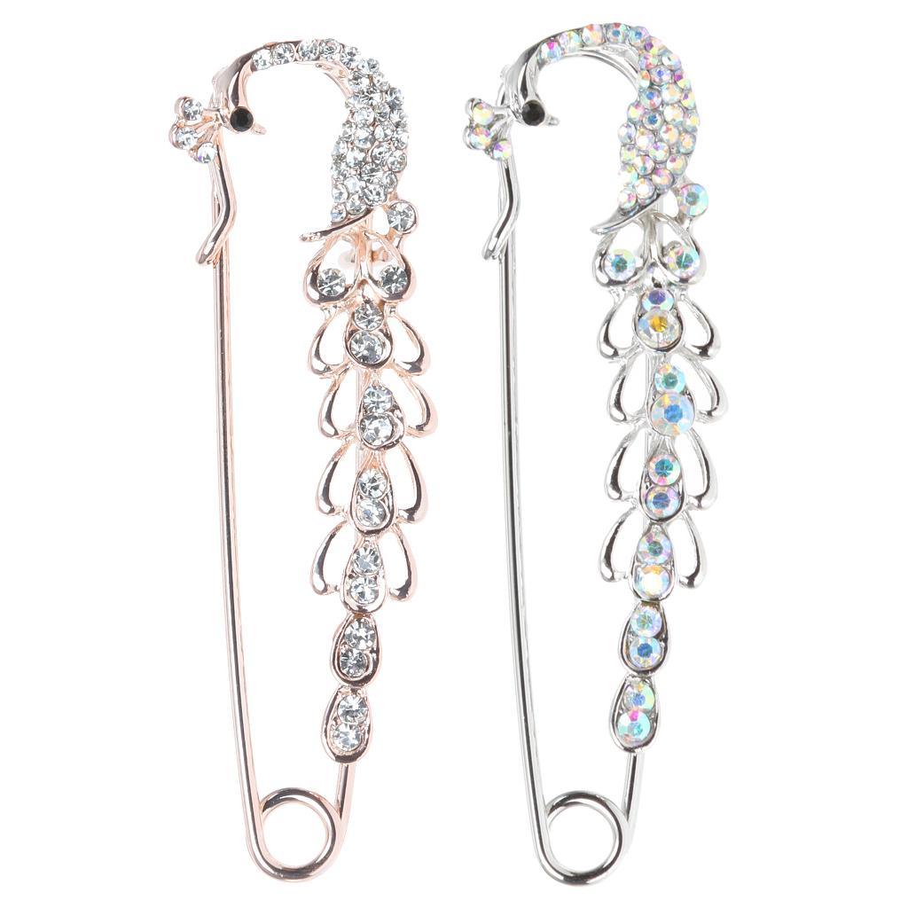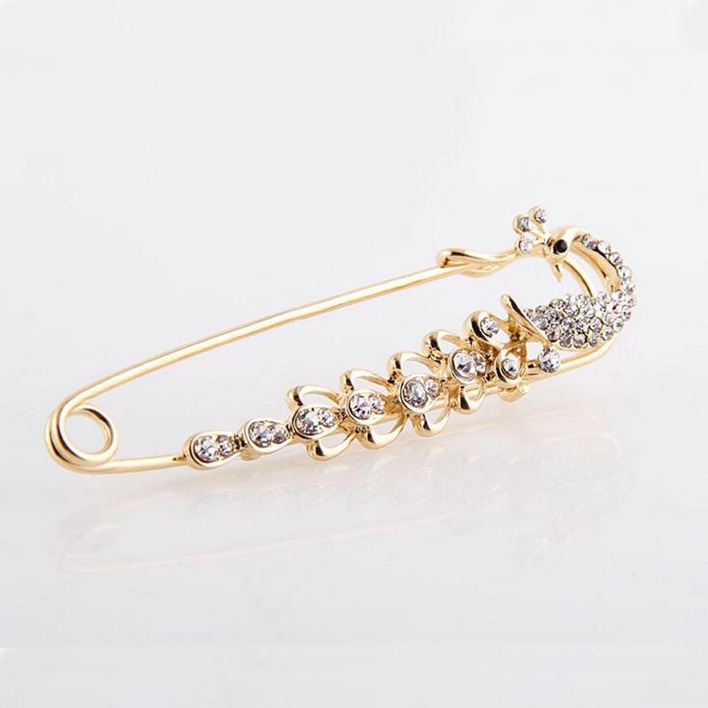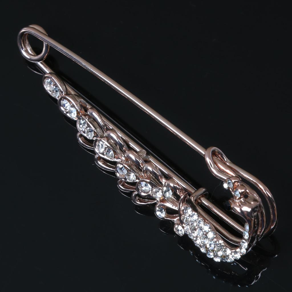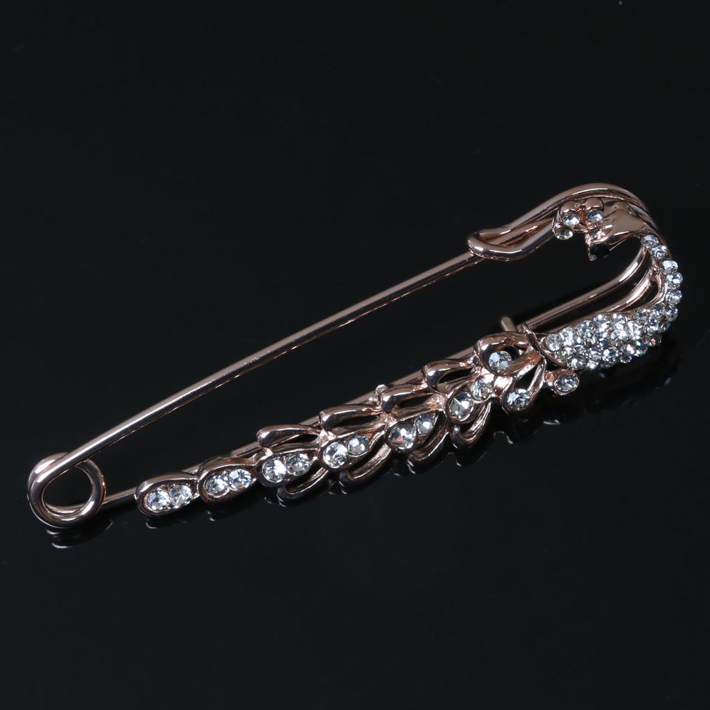 Maxbell Maxbell Crystal Peacock Safety Pin Brooch Clip for Ladies Scarf Coat Gown Rose Gold