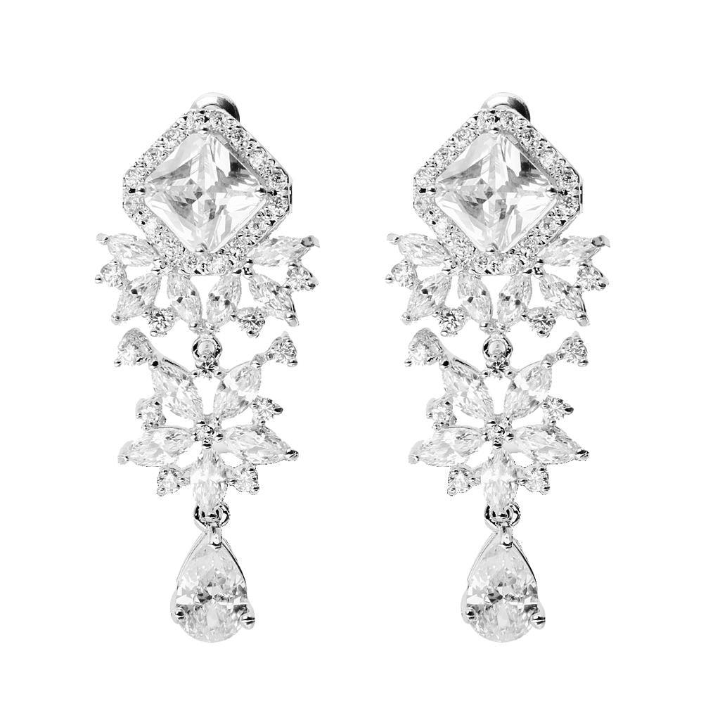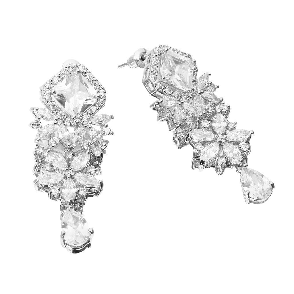 Maxbell Maxbell Crystal Rhinsetone Flower Design Dangle Earrings for Women