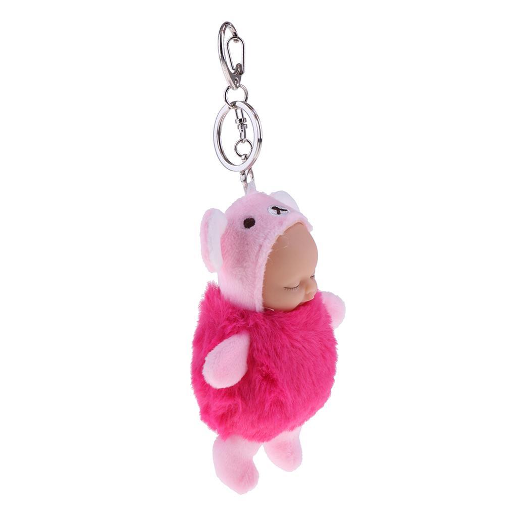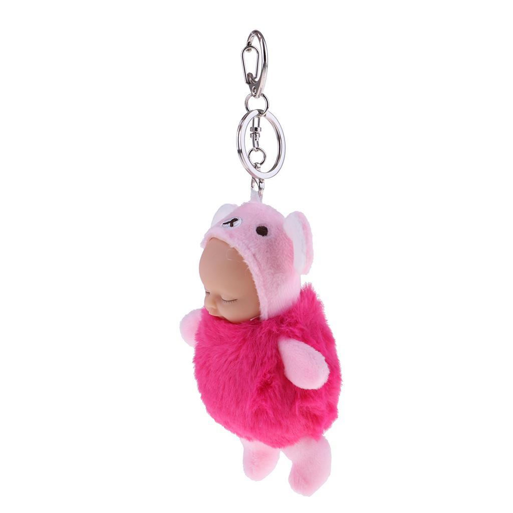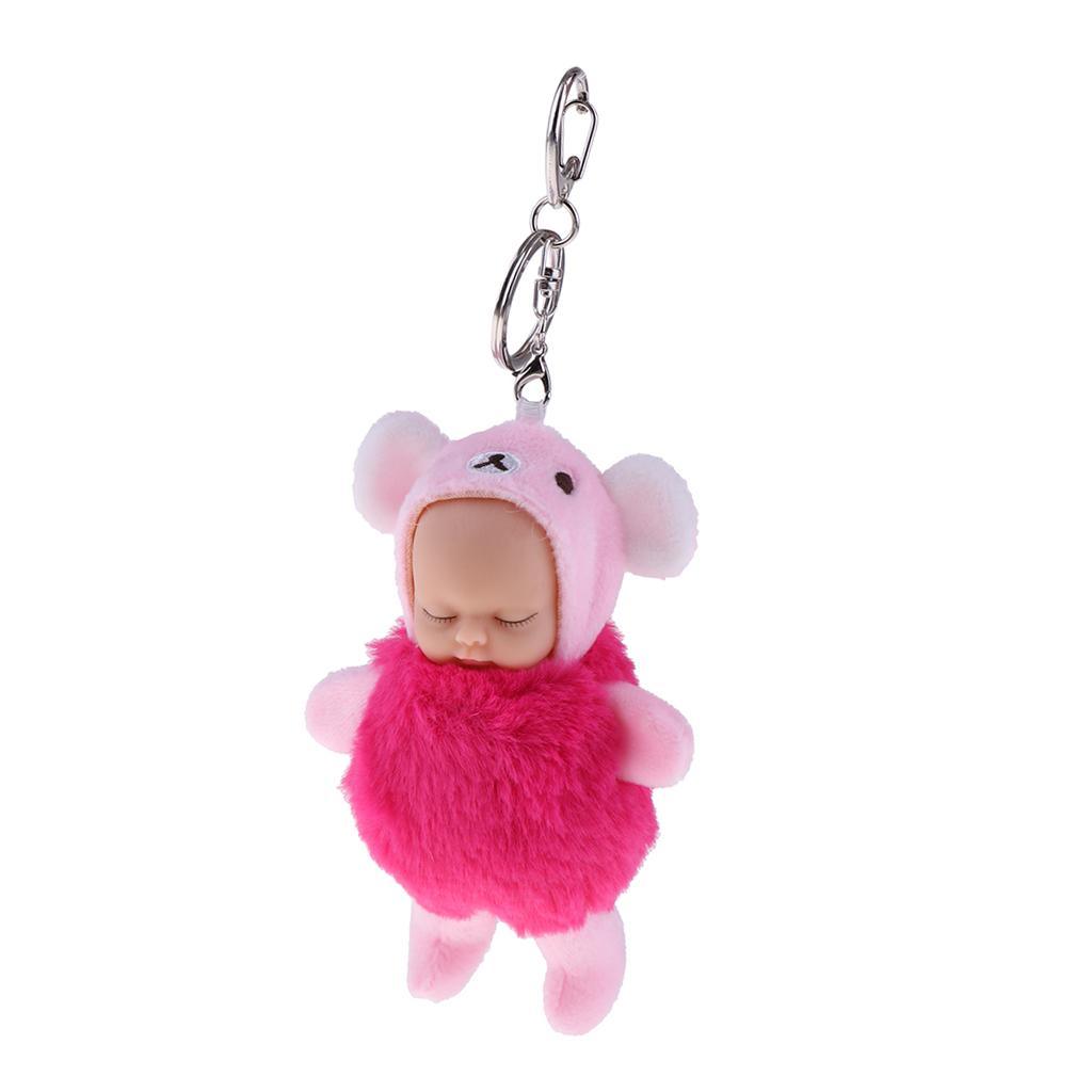 Maxbell Cute Sleeping Baby Doll Key Chain Keyring Bags Car Pendant 11cm Rose Red