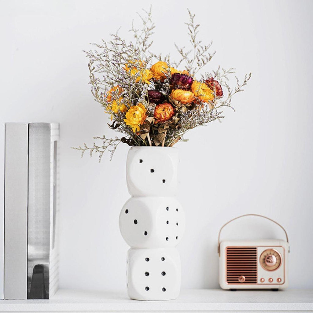 Maxbell Dice Vase Table Centerpiece Creative Ceramic Vase for Bookshelf Desktop Cafe L