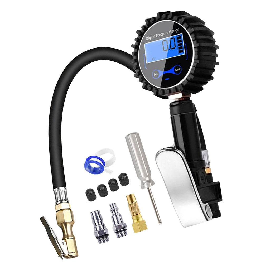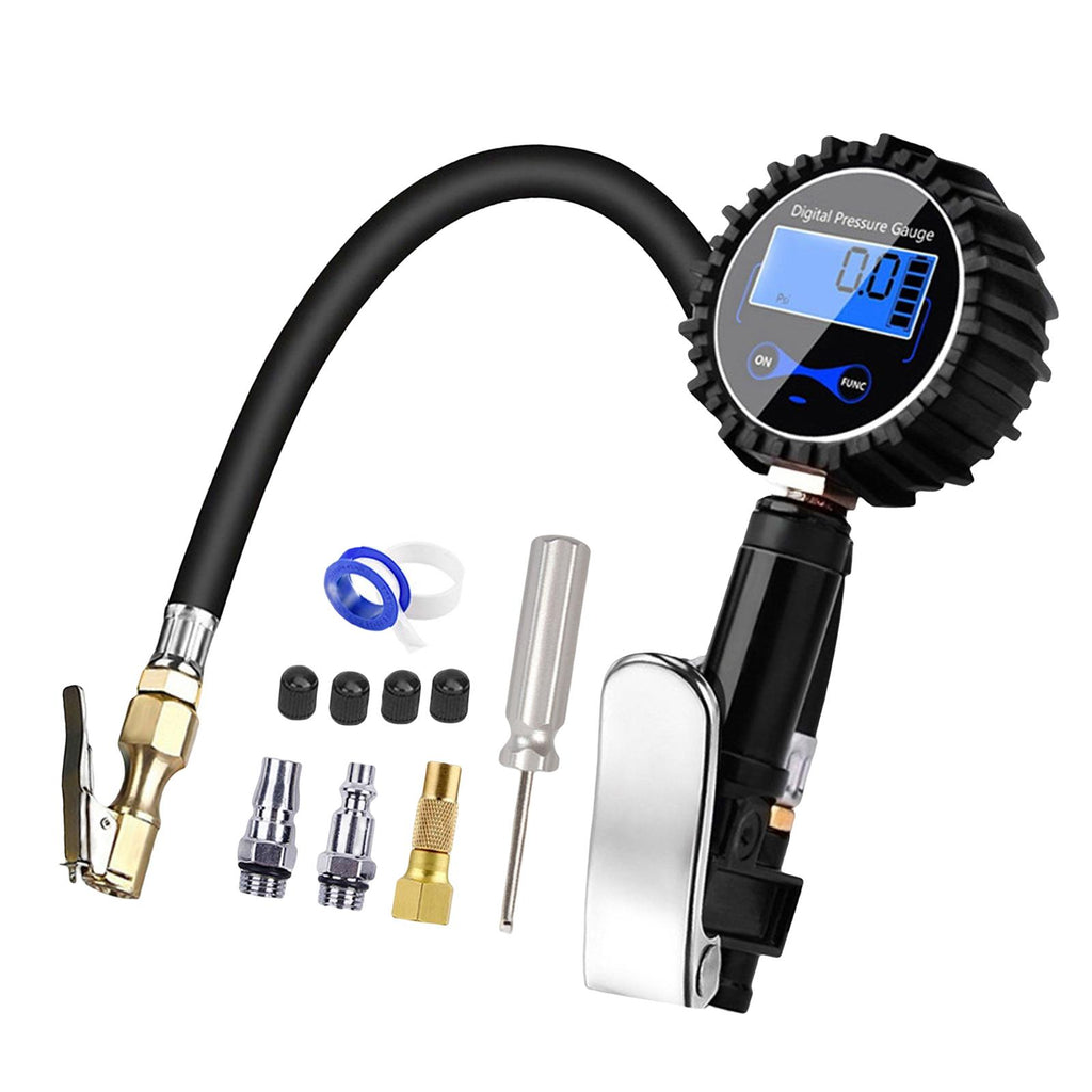 Digital tire inflation tool: copper thickened quick chuck, can quickly connect and disconnect tire nozzle, no leakage; has three functions of pressure measurement, inflation, deflation, high-precision LCD digital instrument display, four units can be switched, long lasting.