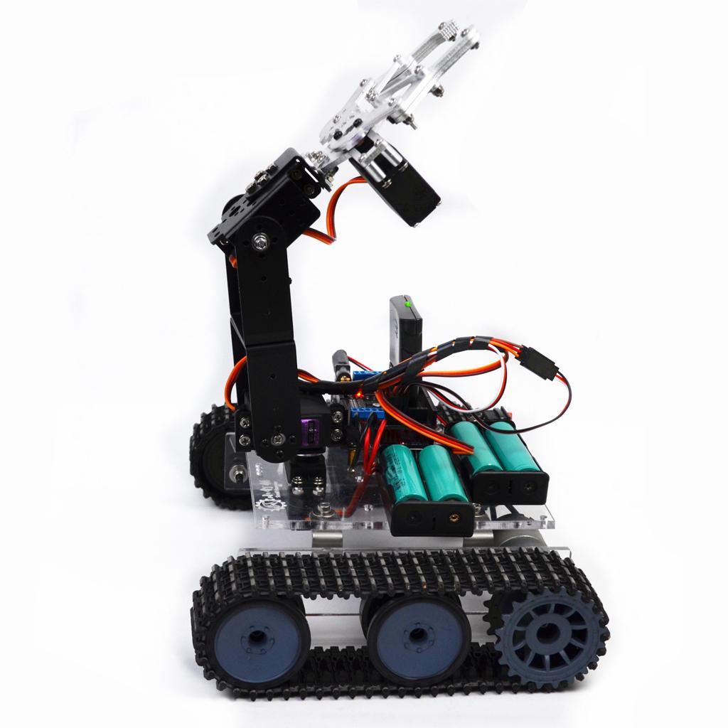 PS2 RC handle controlled tank chassis walk, 4-dof robot arm for mechanical work