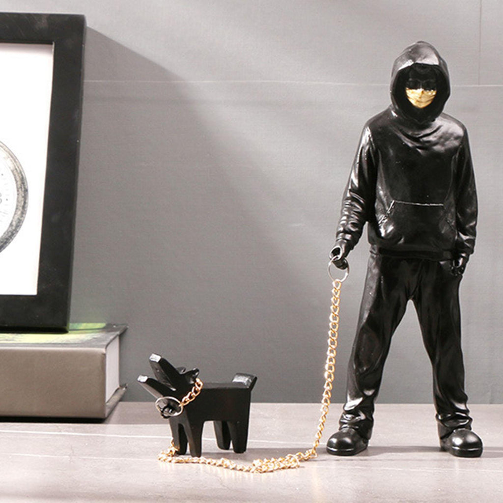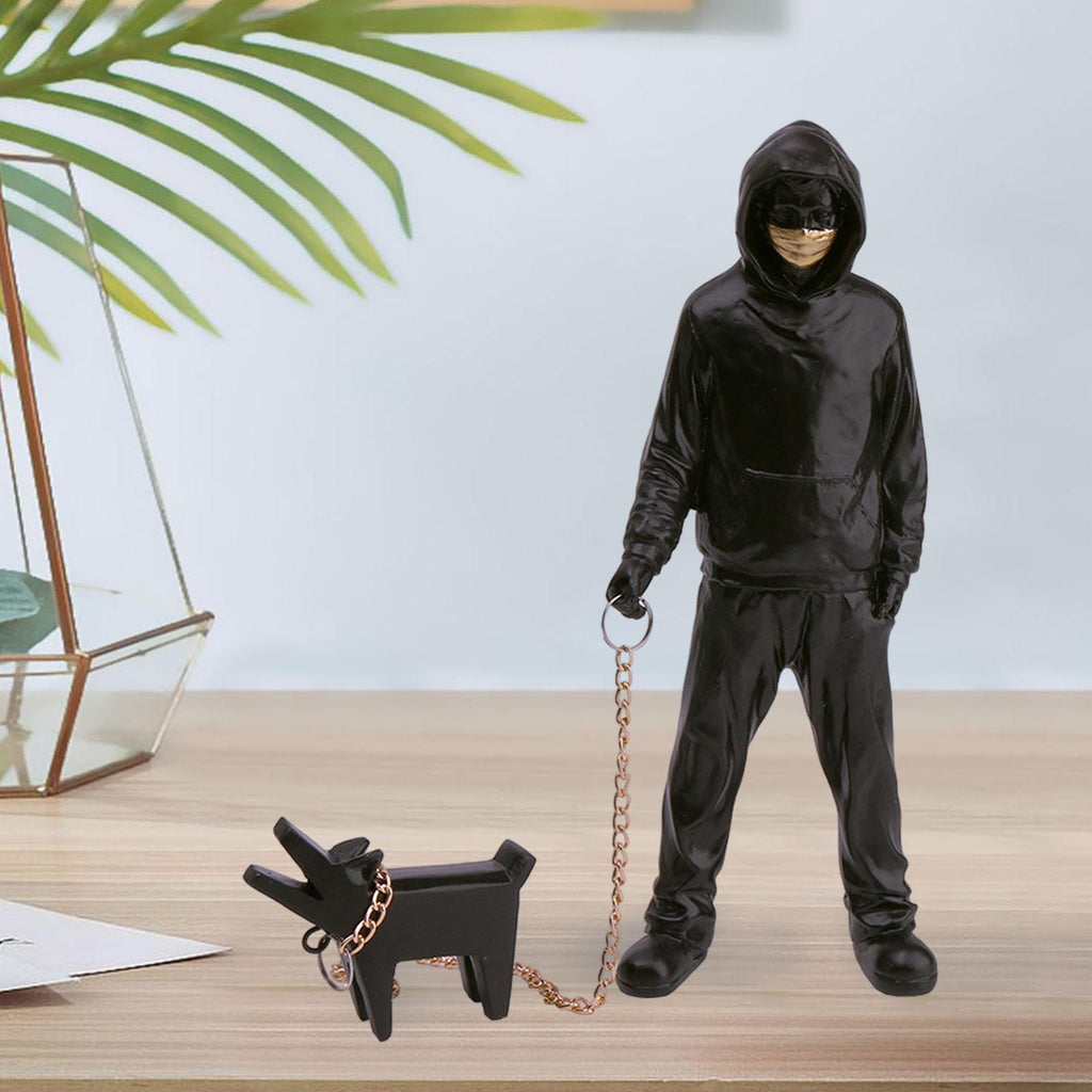 Maxbell Maxbell Dog Walker Statue Abstract Human Sculpture Housewarming Dorm Resin Figurines Black
