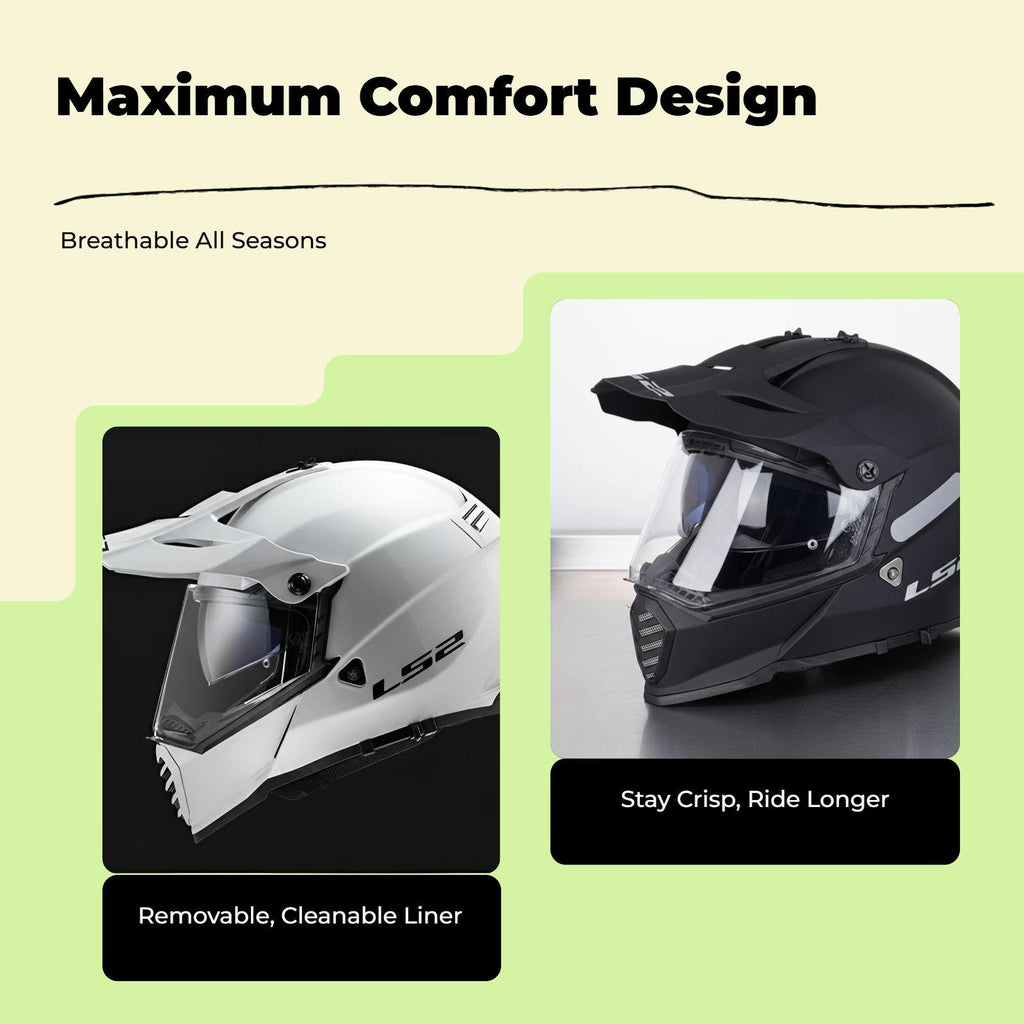 [Double visor complete coverage] This adjustable helmet features a double visor system and comprehensive protection, perfect for street bikes, touring, and awayterrain riding. [Lightweight and sturdy] Made from lightweight materials and multi-density foam for added comfort on long rides. [Quick release & removable lining] Features a fast release chin strap and a removable, cleanable lining for easy care and a snug-fit. [Ventilation & heat dissipation] Innovative ventilation system ensures ventilation and heat dissipation, keeping you comfortable in all seasons. [Adaptable for multiple riding scenarios] Suitable for adults and compatible with street bikes, ATVs, motocross, urban commuting, awayering practical versatility and great value.