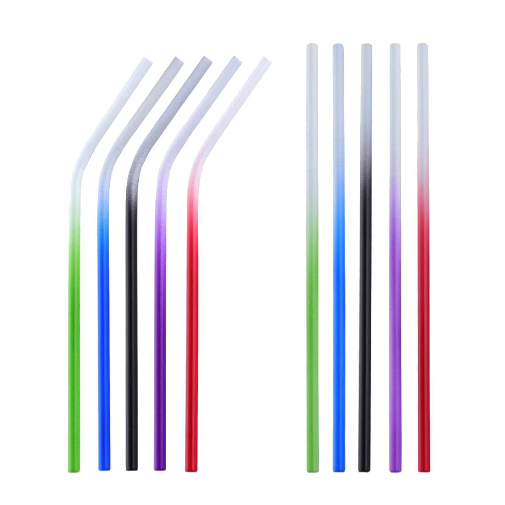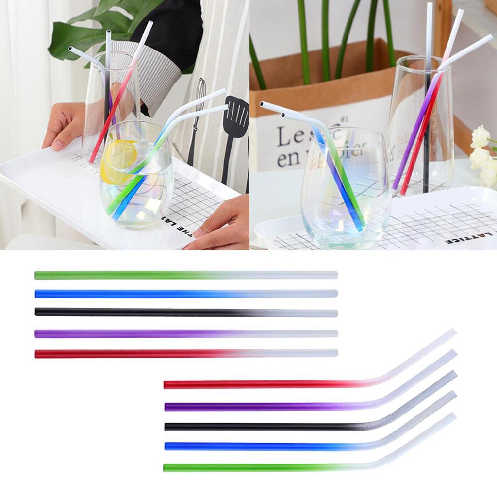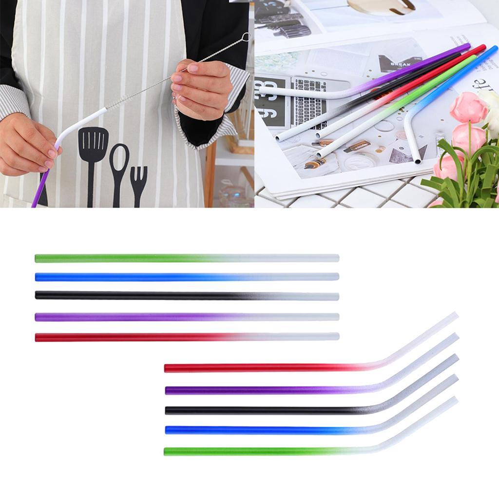 Max Drinking Metal Straws Gradient Color Sucker Drinkware Picnic Straight Bent