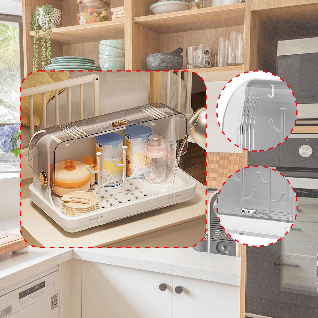 【Versatile Storage Solution】: This Nursing Bottle Storage Box Organizer is great for storing a variety of items such as teacups, tea sets, baby bottles, supplementary food bowls, and cups, etc