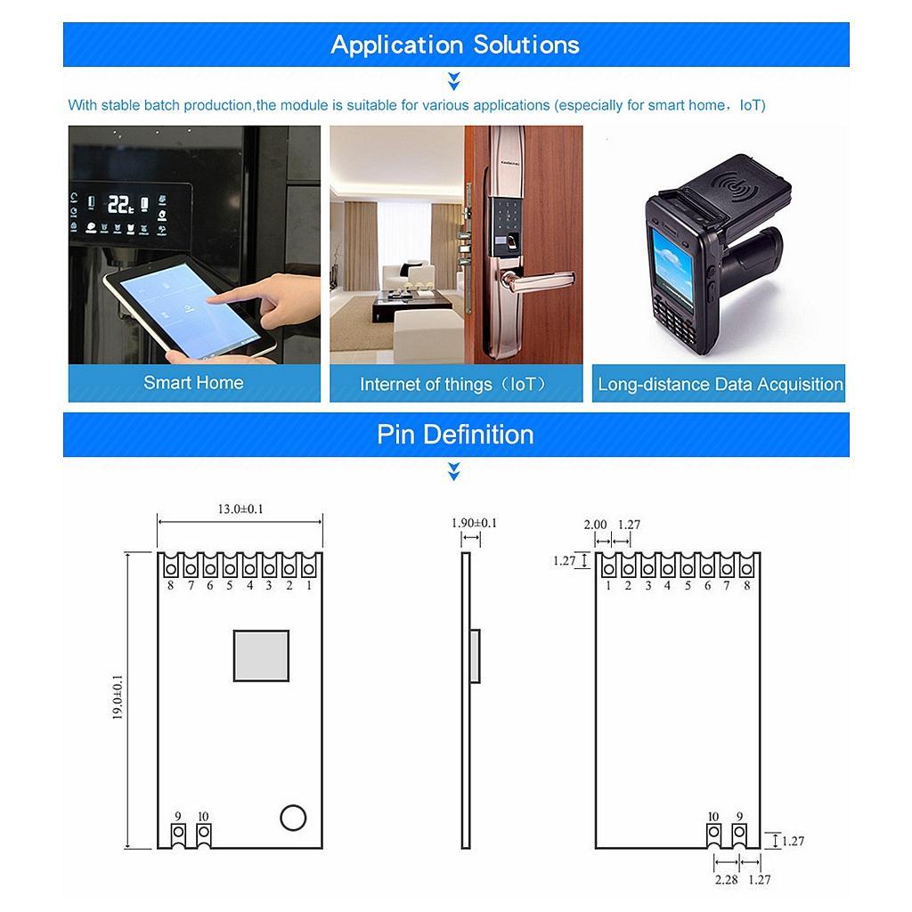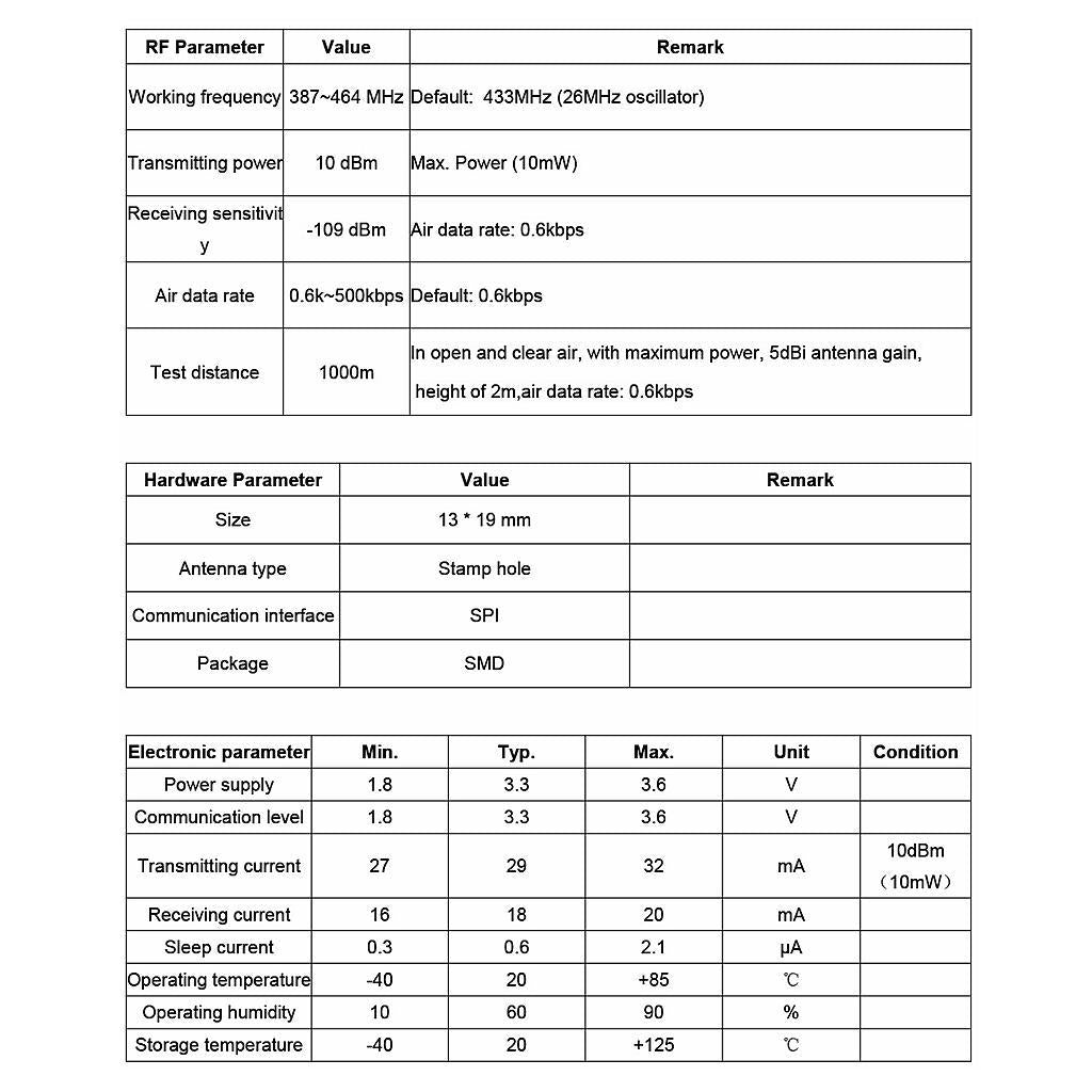 Receiving sensitivity: -109 dBm Air data rate: 0.6kbps