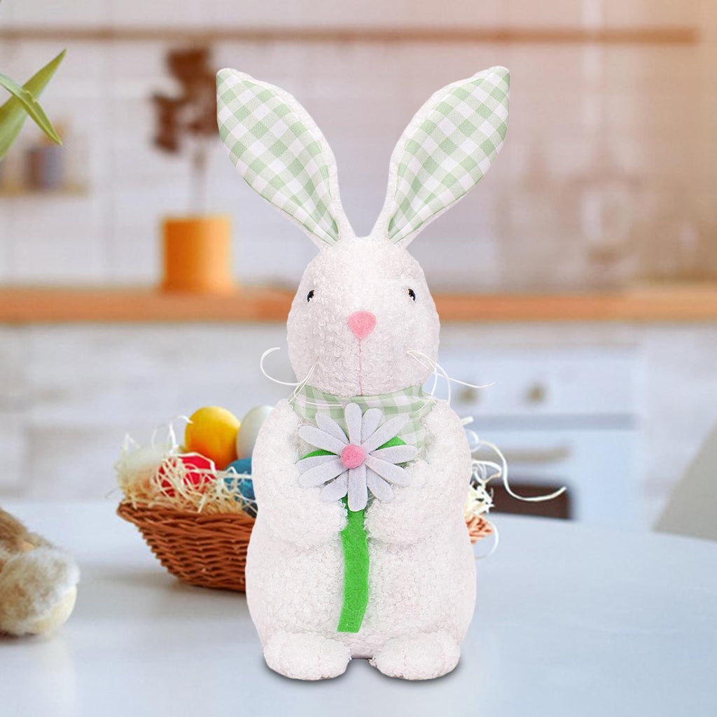Maxbell Easter Bunny Doll 11x23cm Desktop Decor Plush Toy for Kitchen Home Farmhouse holding flower