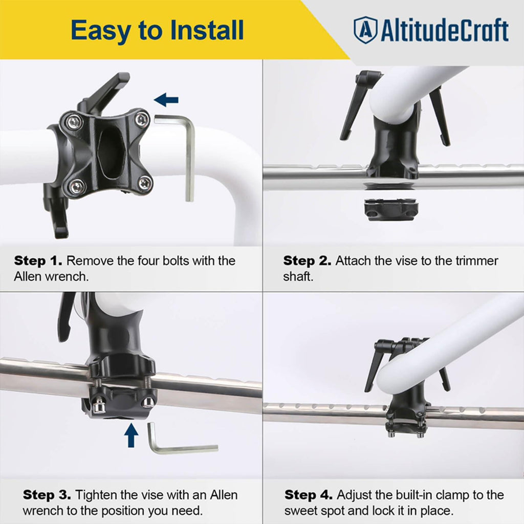 【Adjustable Angles】: The multi angle weed trimmer handle features an adjustable grip and a 4 hole reinforced vise. to meet the needs of users of different heights.