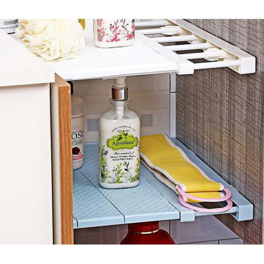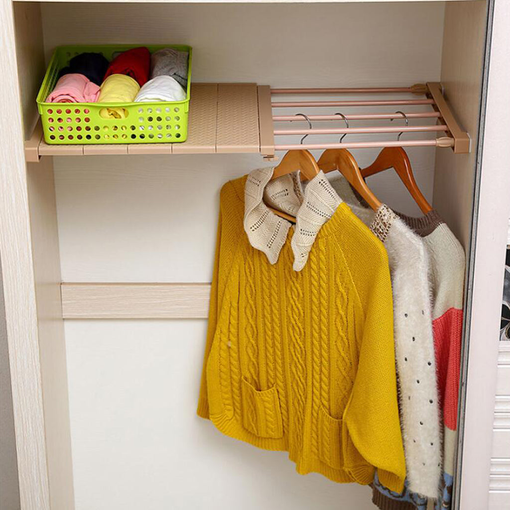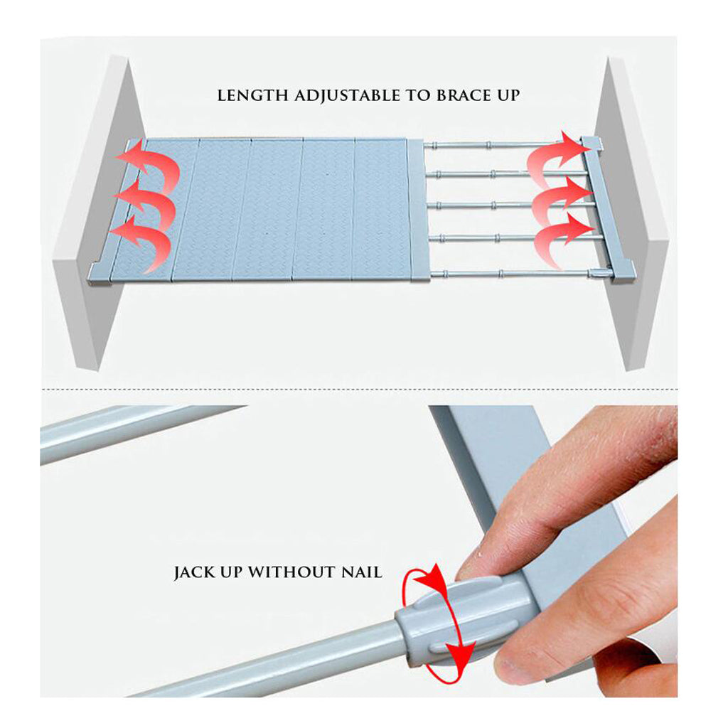 Max Expandable Shelf Closet Organizer Storage Adjustable Rack Rod Blue 38-55cm