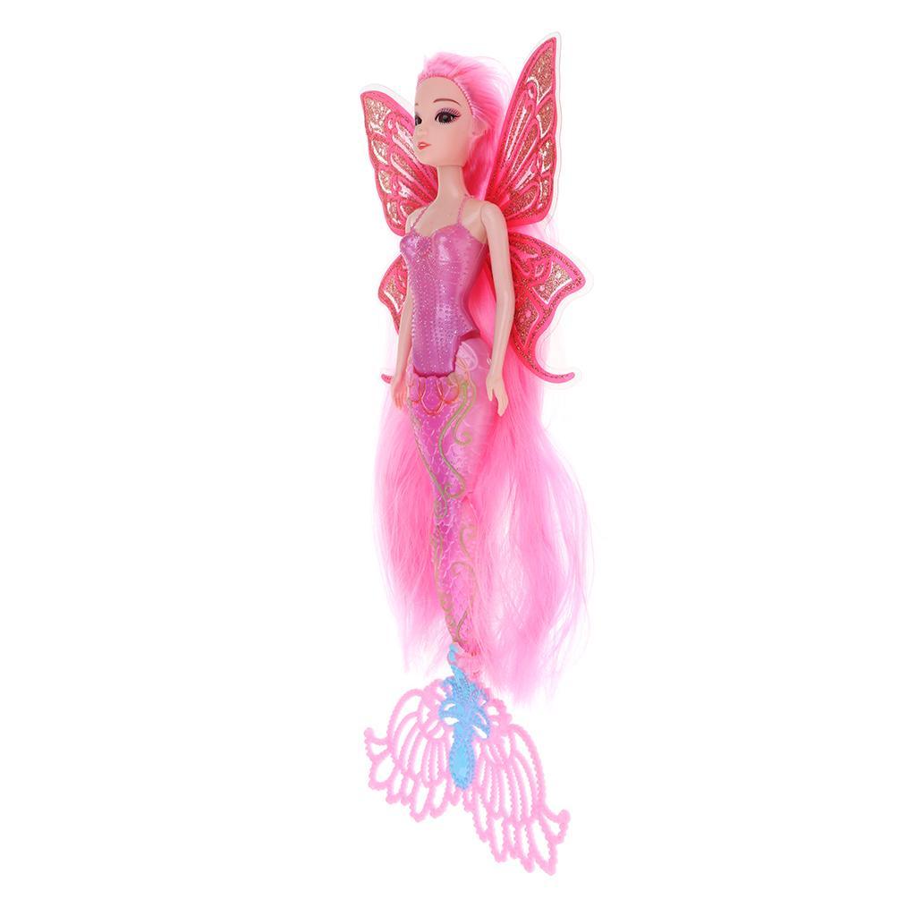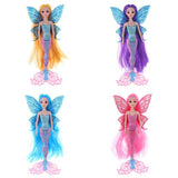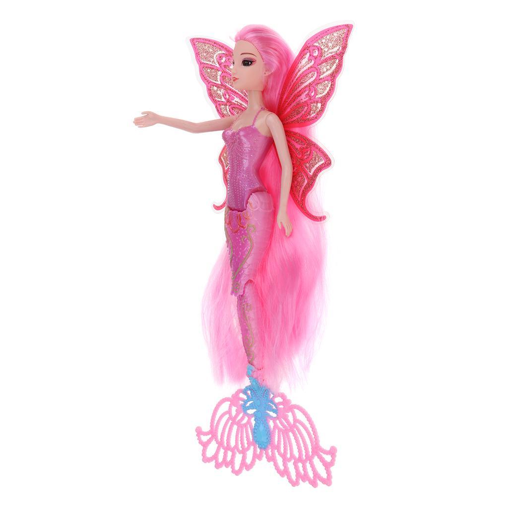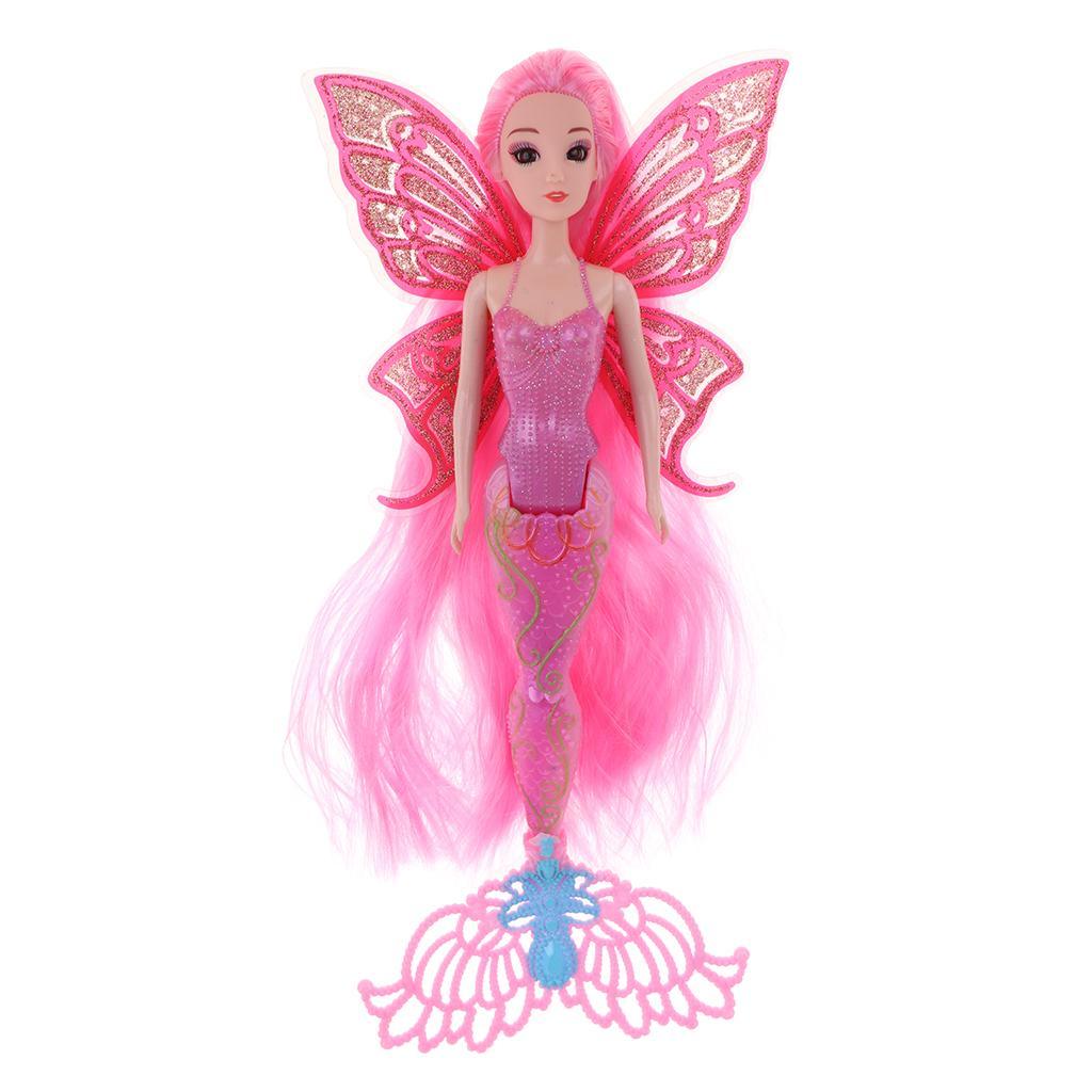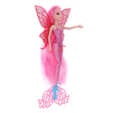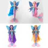 Features glittering mermaid tail and butterfly wings. The has long and thick hair wig.