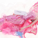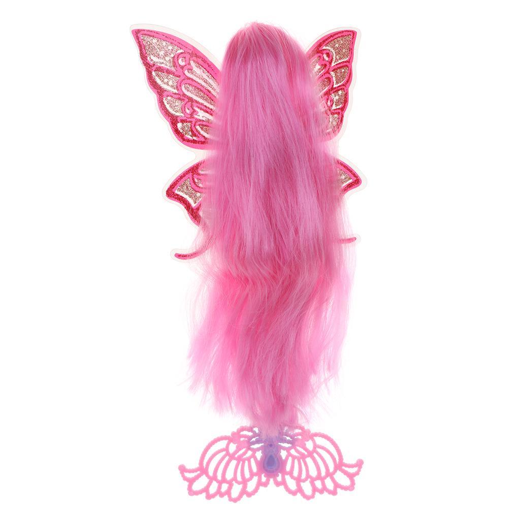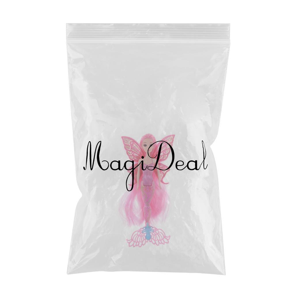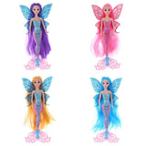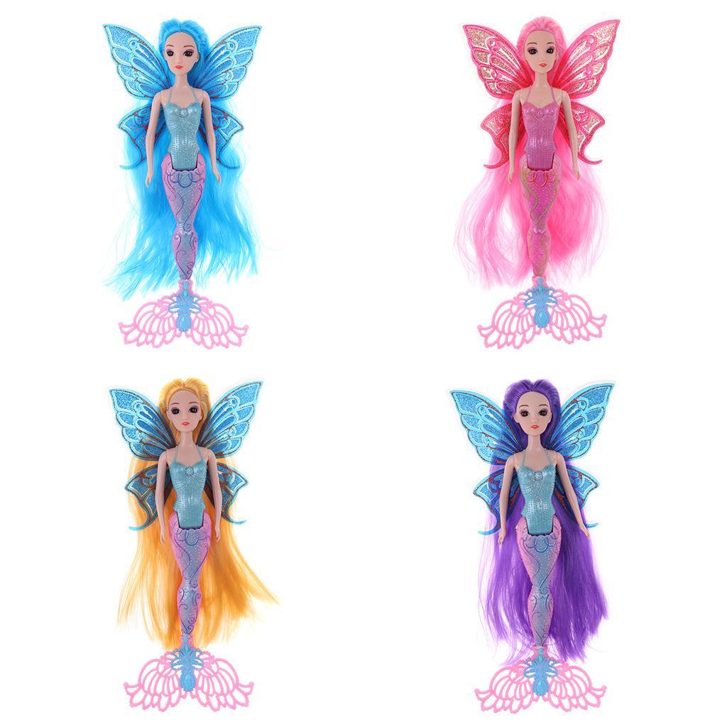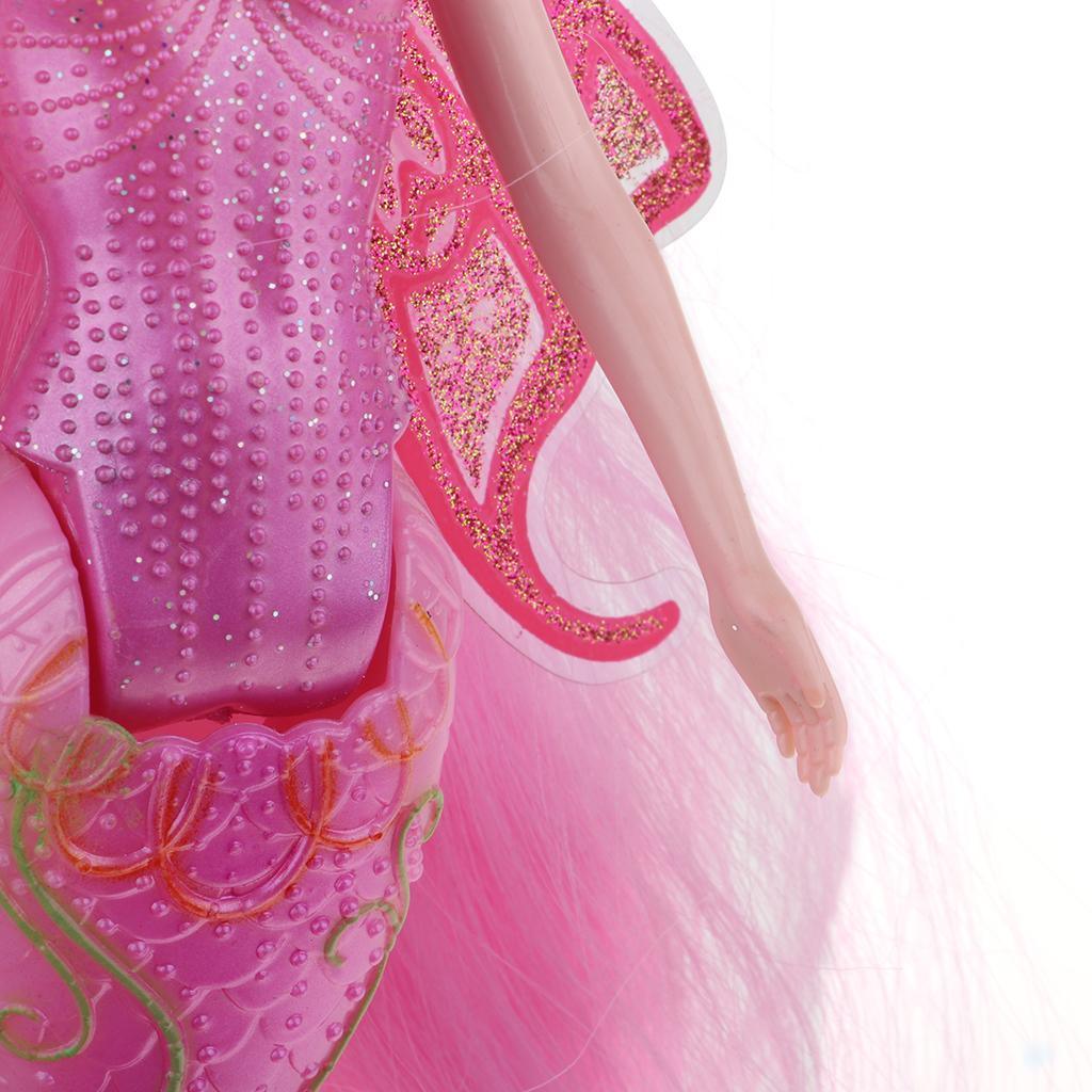 Features glittering mermaid tail and butterfly wings. The has long and thick hair wig.