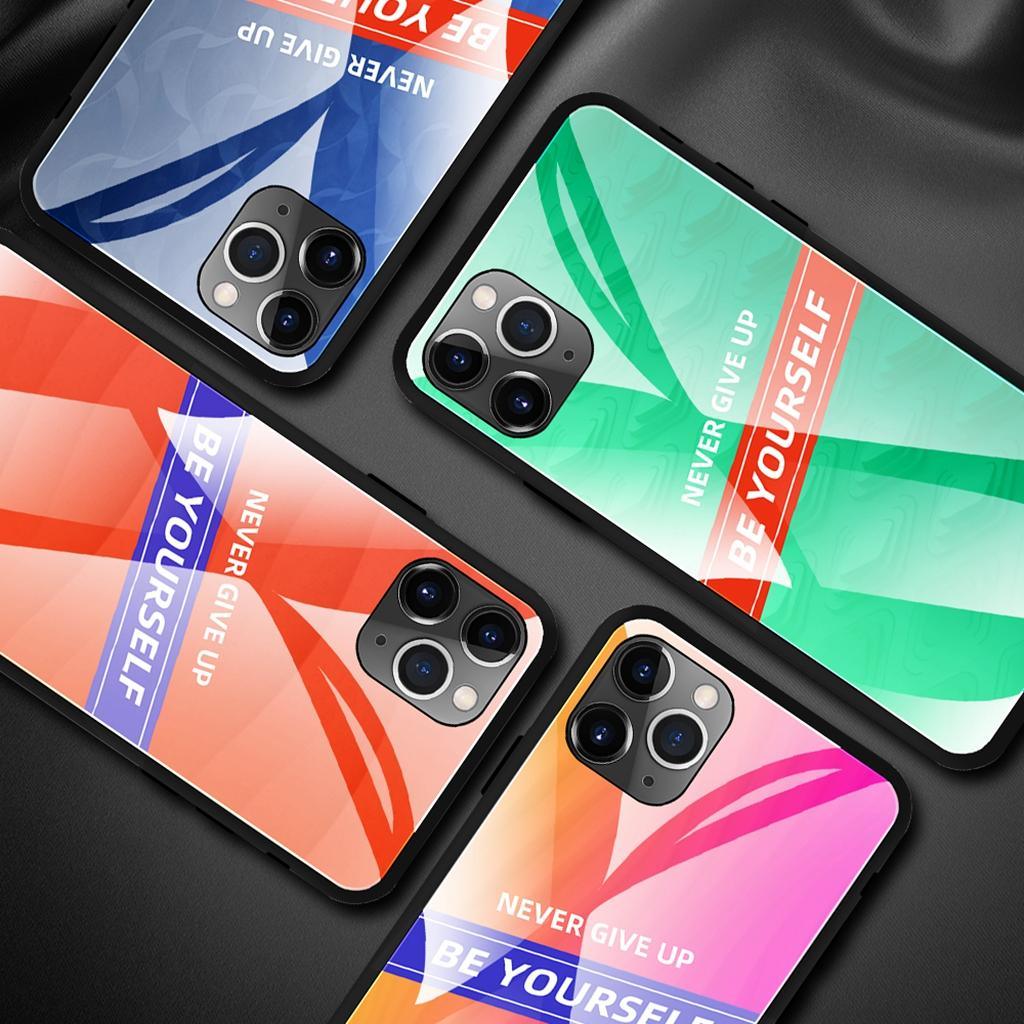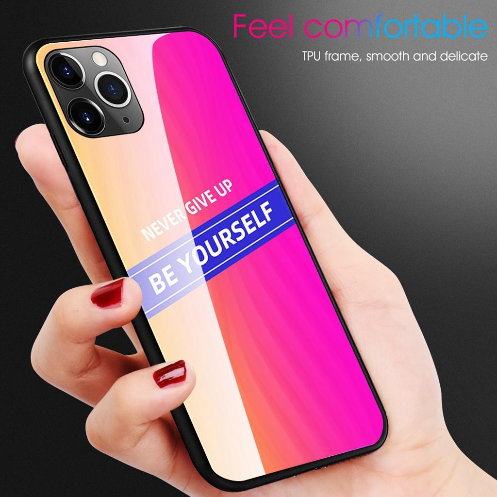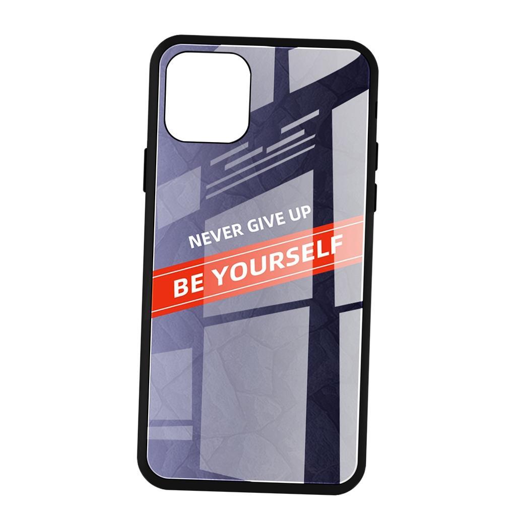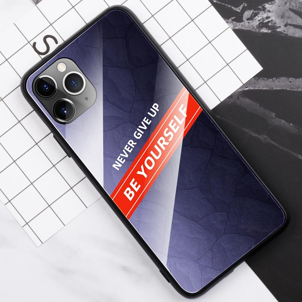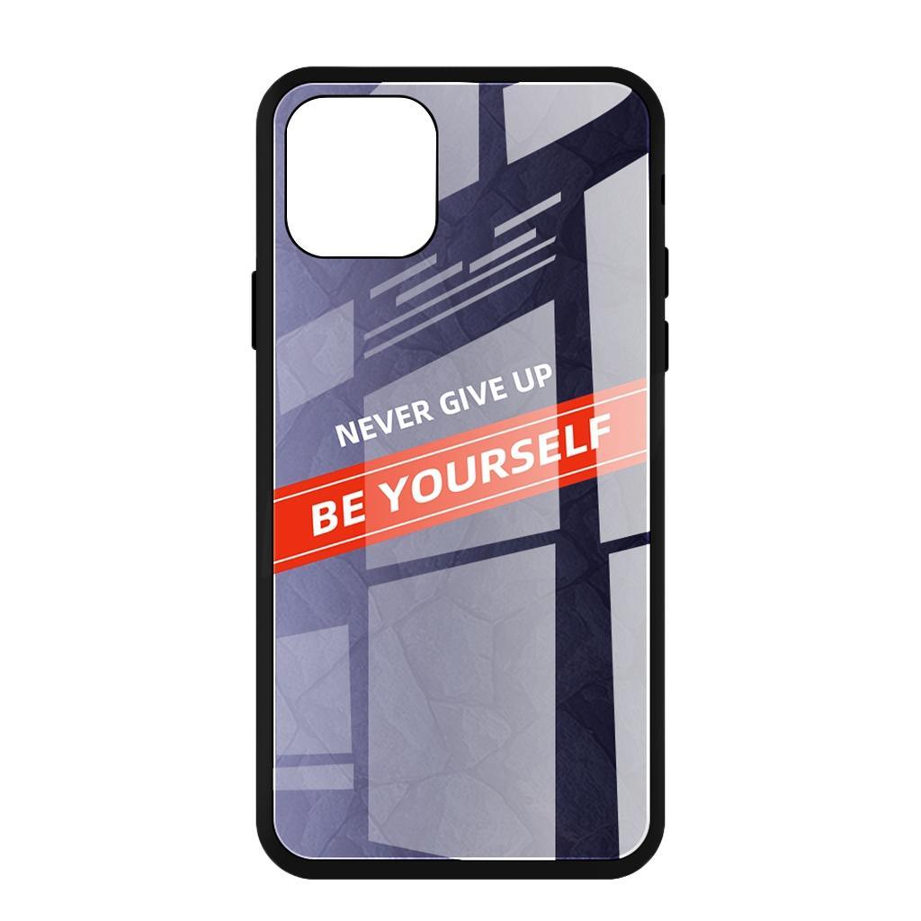 Maxbell Fashion Glass NEVER GIVE UP BE YOURSELF Phone Case for iPhone 11 5.8inch