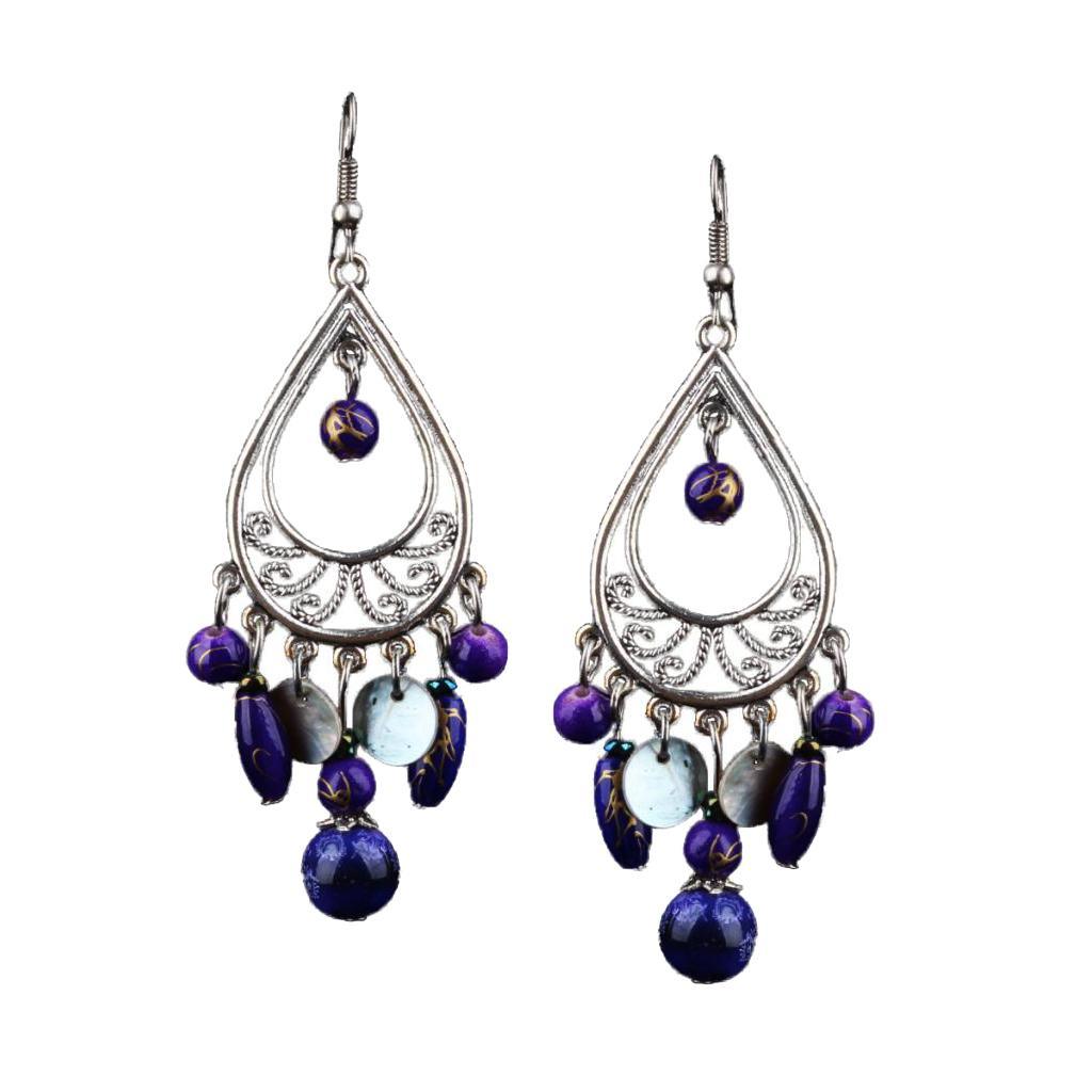 Maxbell Maxbell Fashion Women's Bohemian Beads Tassel Dangle Drop Earrings Purple
