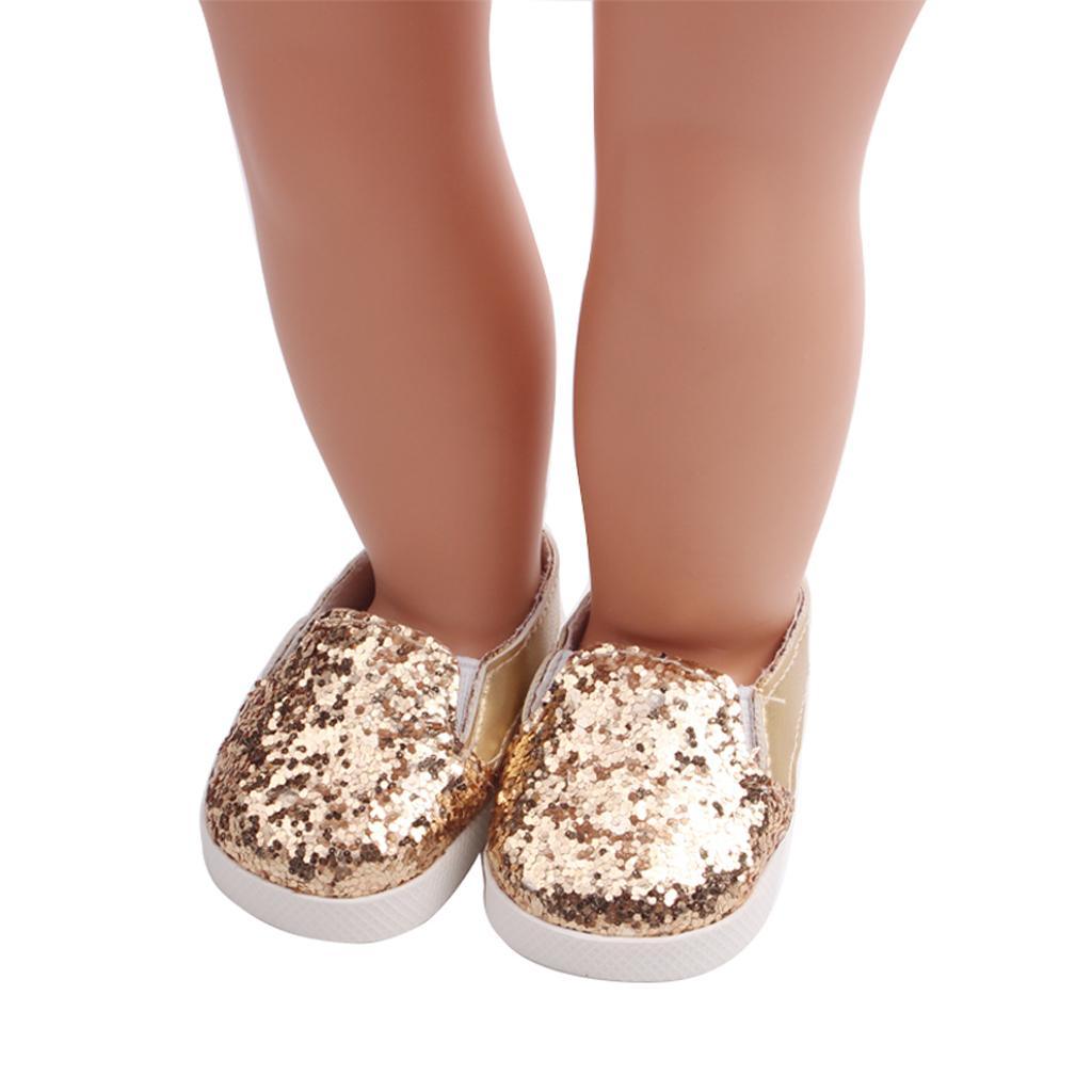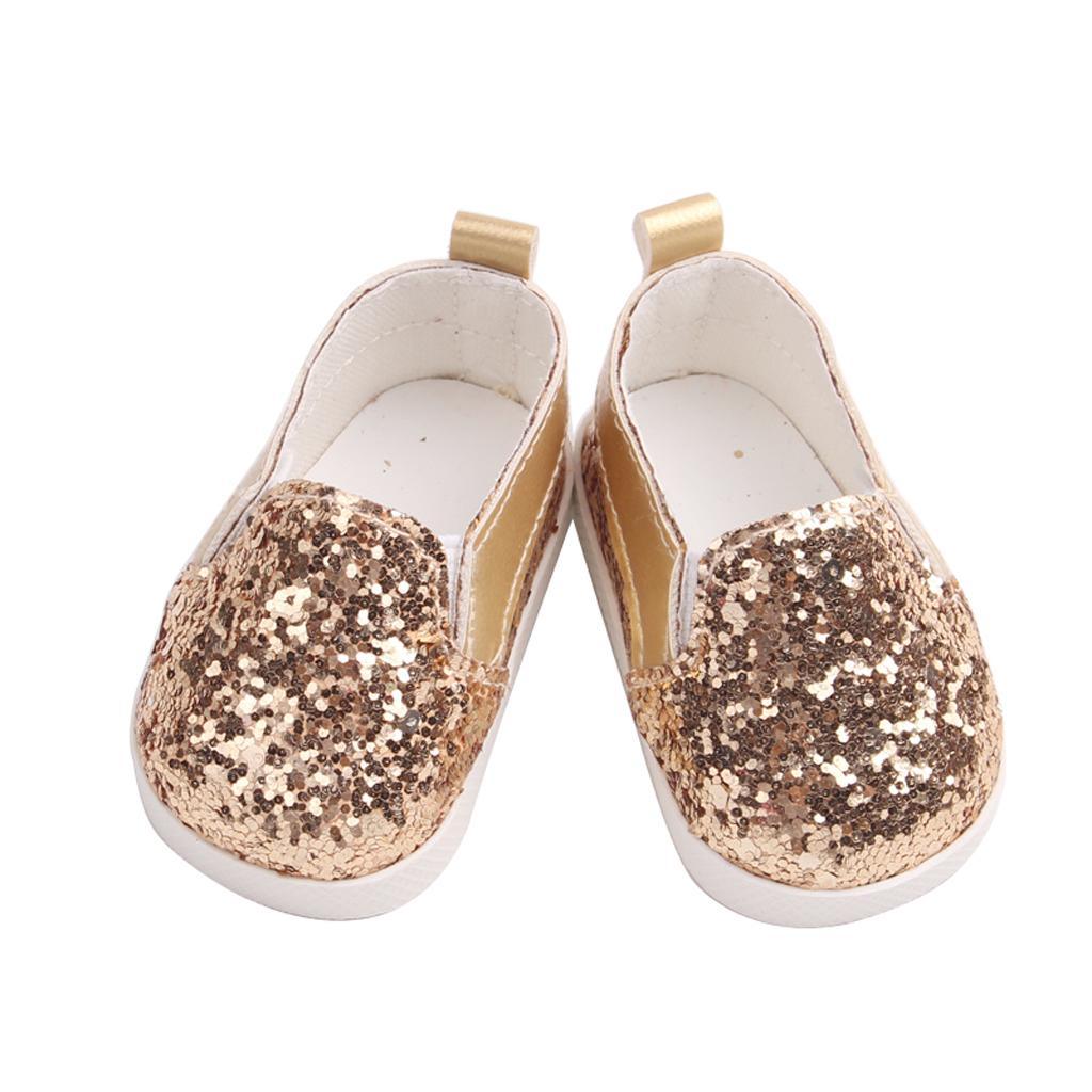 Maxbell Maxbell Fashionable Sequins Dancing Shoes For 18 Inch Dolls Gold